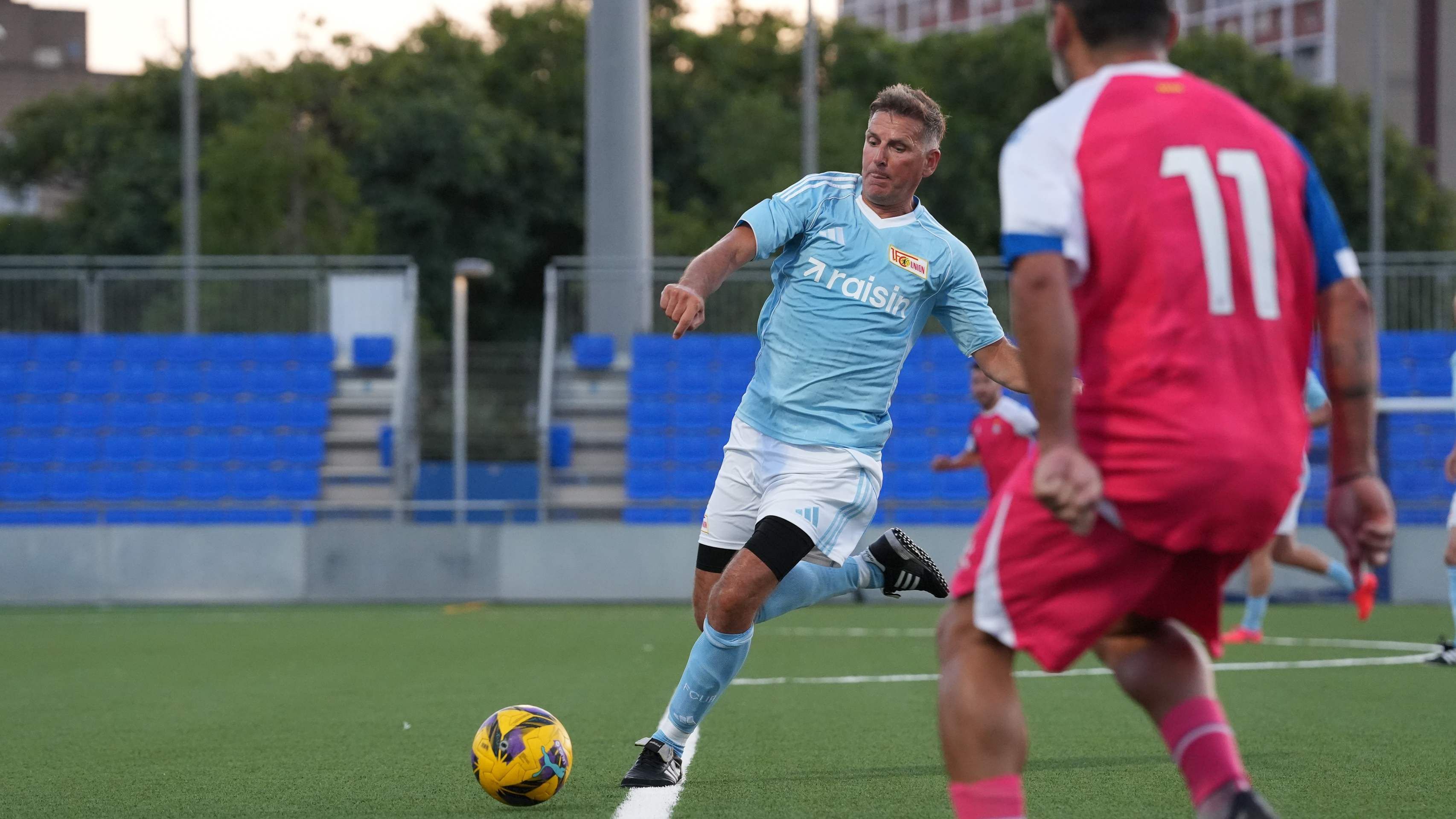 Das Spiel begann von beiden Seiten mit hohem Tempo und zielgerichteten Torabschlüssen. Den Veteranos vom RCDE gelang dabei der erste Treffer des Abends in der 6. Minute. Es folgten weitere muntere Minuten auf dem Kunstrasen bei ausgeglichenem Spiel. Der Ausgleichstreffer von Christopher Quiring in der 11. Spielminute nach einer sehr schönen Kombination durch die Zentrale war der erste Lichtblick für die Köpenicker Oldies. Nur elf Minuten später war erneut Quiring der bejubelte Unioner. Einen Freistoß aus halblinker Position, etwa 20 Meter vor dem gegnerischen Tor schlenzte er über die Mauer der Gastgeber und traf unhaltbar zur 2:1-Führung der Köpenicker. Fast im Gegenzug gab es eine zweifelhafte Elfmeter-Entscheidung, die Espanyol zum postwendenden Ausgleich nutzte. Und nur eine weitere Minute später waren die Eisernen noch unsortiert und mussten das 2:3 hinnehmen. Damit verabschiedeten sich beide Teams in die Pause.