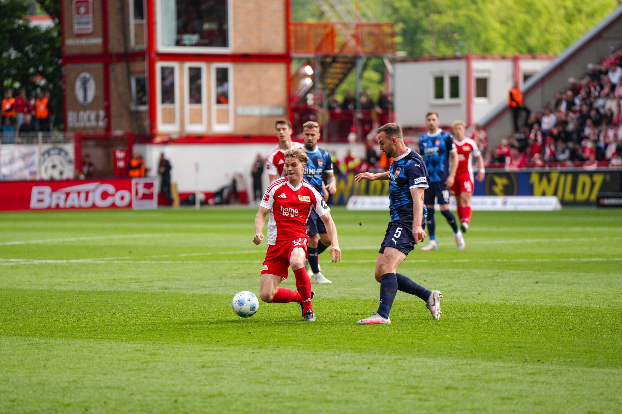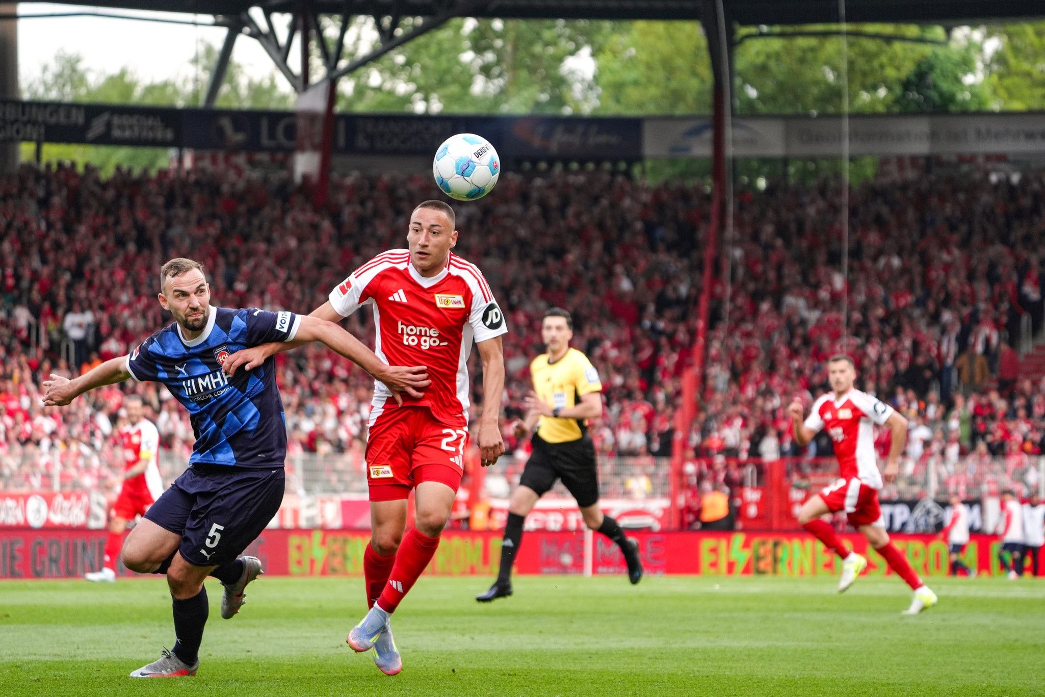 Der 1. FC Heidenheim wollte das Spiel am Anfang gut aufbauen. Doch Union machte Druck und spielte schnell nach vorne. Dadurch hatte Heidenheim Schwierigkeiten, gefährlich zu werden. Auch Union konnte zuerst keine guten Chancen nutzen. Es gab kaum Torschüsse in den ersten Minuten.