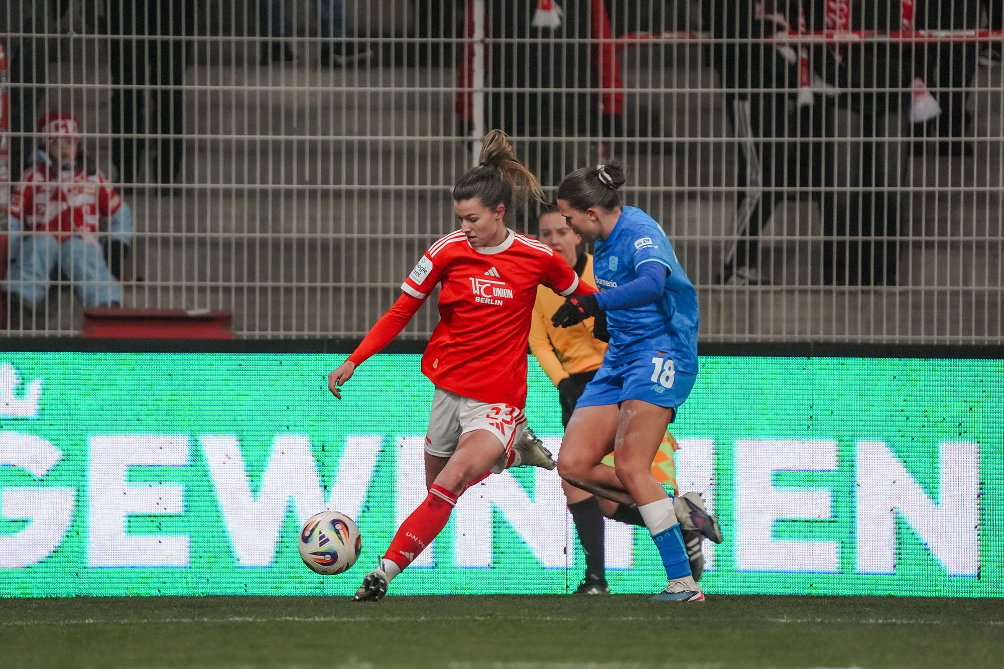 In der 69. Minute bekam Ruby Grant von Leverkusen die zweite gelbe Karte. Sie musste vom Platz. Union spielte jetzt besser und kontrollierte das Spiel. Die Entscheidung schien nah.