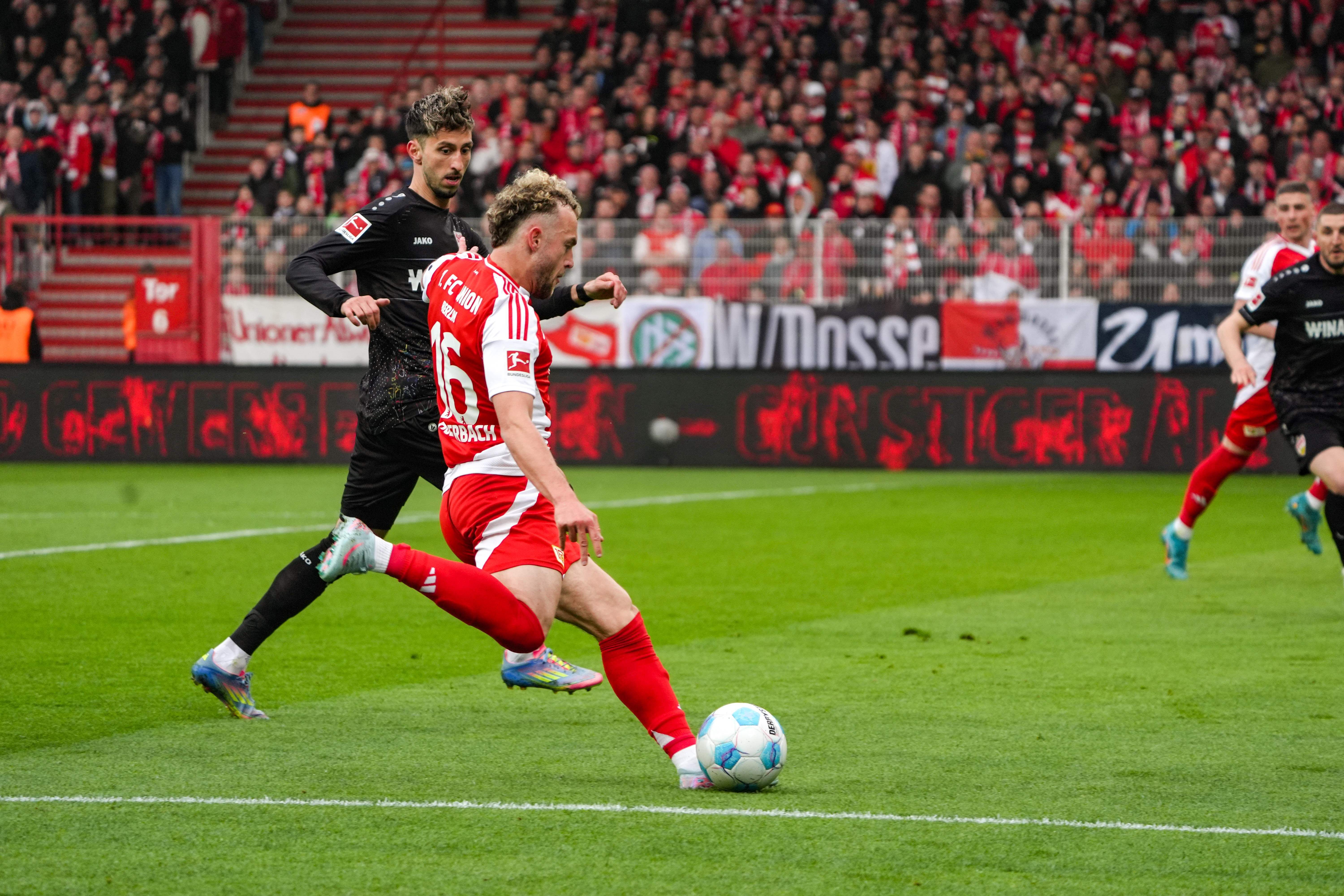 Doch die 2:0-Führung währte nicht lange: Mittelstädt sah von der linken Seite die ungeordnete Abwehr der Eisernen und bediente Nationalspieler Undav mit einem Pass in die Mitte. Der konnte aus zentraler Position aus knapp 18 Meter mit dem ersten Schuss aufs Tor den Anschlusstreffer erzielen (23.). Diese Energie nahm der VfB Stuttgart mit und egalisierte in der 29. Spielminute den Spielstand. Mit über 100 km/h versenkte Millot die Kugel unhaltbar aus dem rechten Halbfeld im langen Eck.