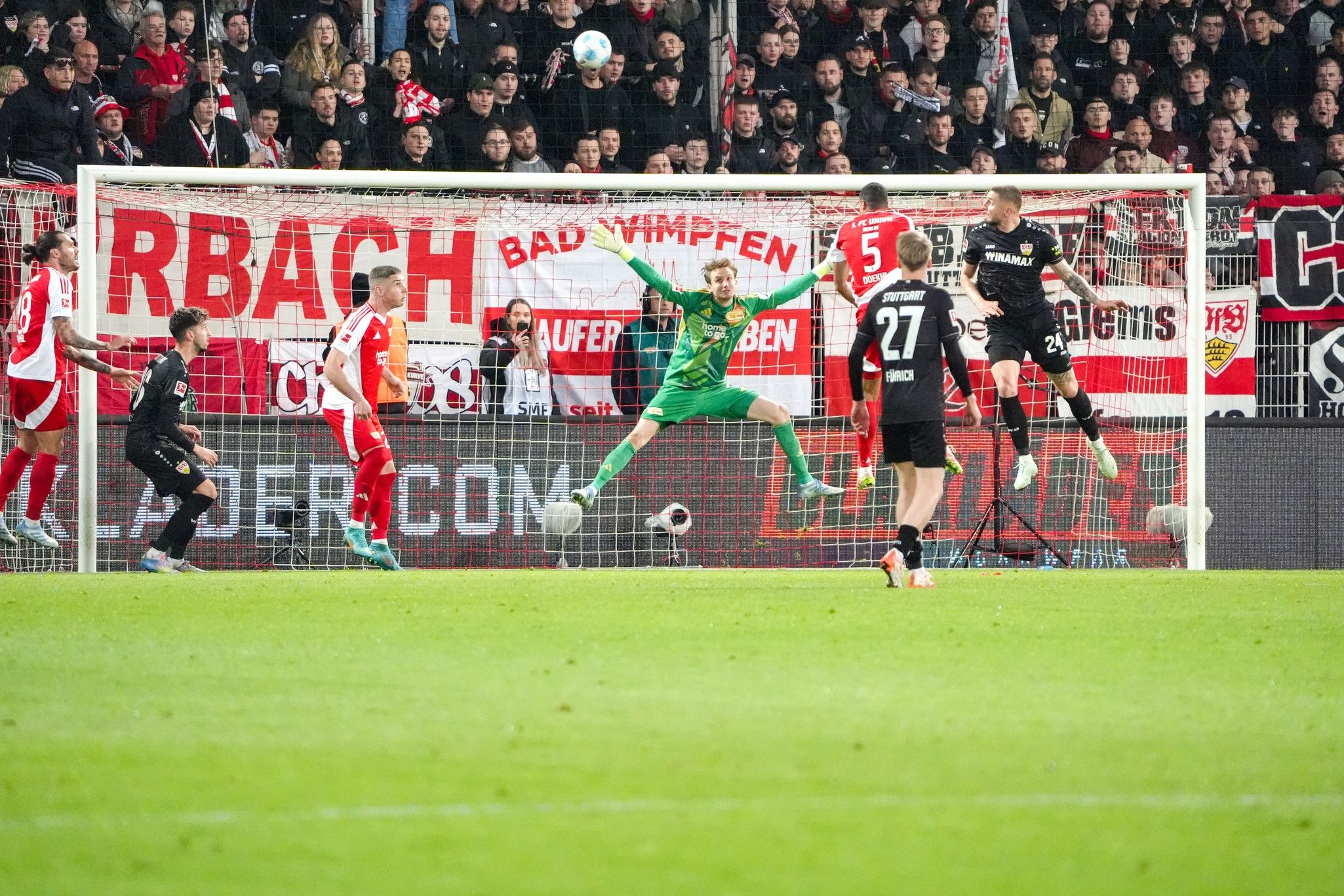 Und auch wenn die Stuttgarter den Gegentreffer schnell abschütteln konnten, waren es wieder die Hausherren, die erneut nach ruhendem Ball jubeln durften: Den Standard von Trimmel legte Leopold Querfeld auf Abwehrkollege Diogo Leite rechts raus. Der Portugiese kam völlig unbedrängt zum Abschluss per Kopf und versenkte das runde Leder entgegen der Laufrichtung im Tor (18.).