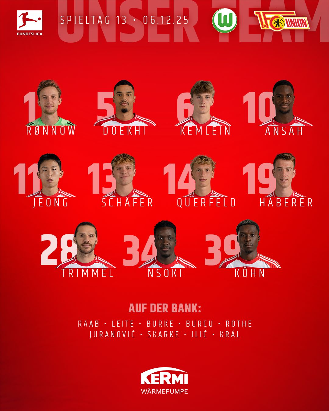 Cheftrainer Steffen Baumgart schickt heute die folgende Elf auf den Rasen: