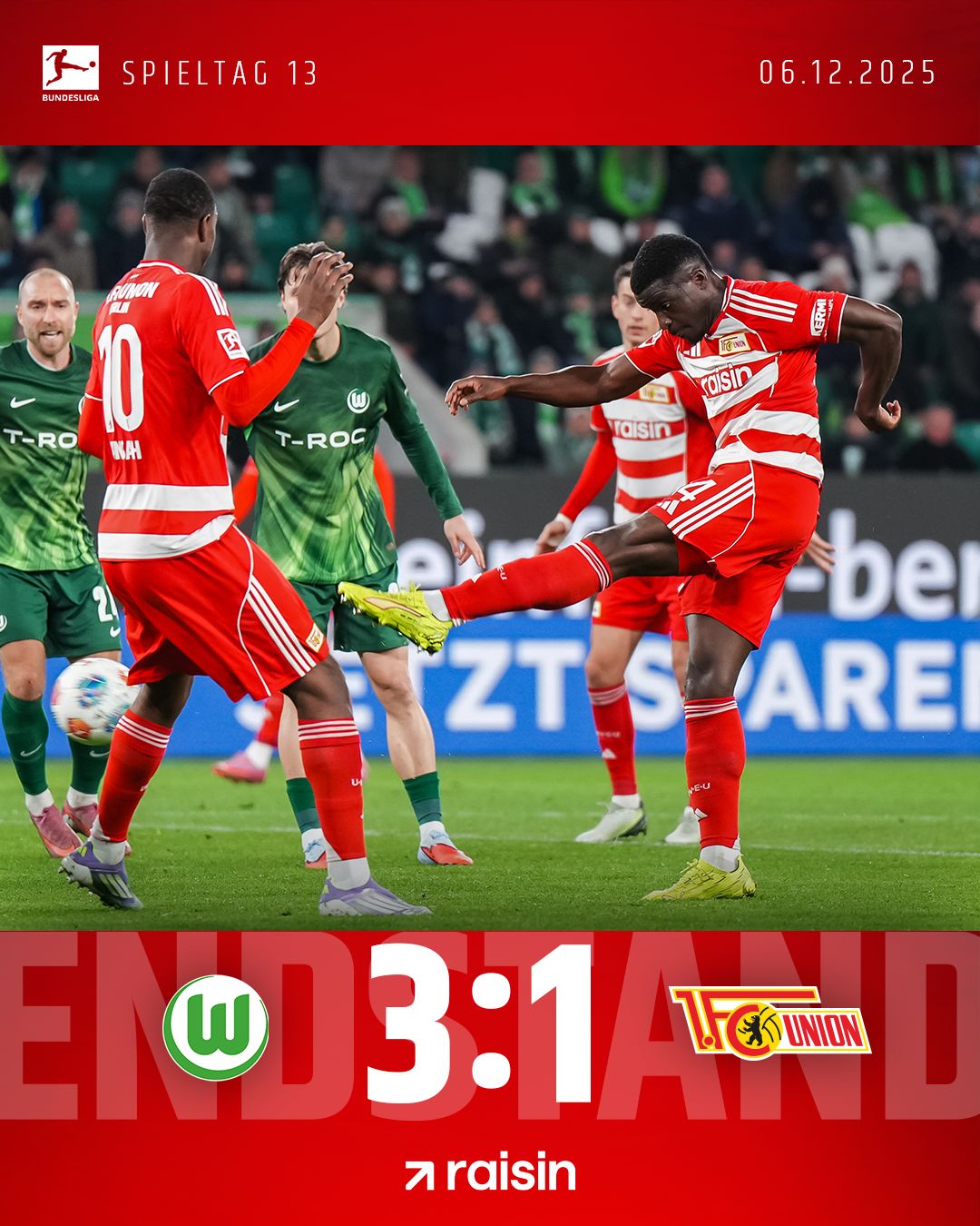 Und apropos Stimmung! Hier in Wolfs… Nee, das passt nicht. Naturgemäß ist das hier in der Arena ja eher eine Atmosphäre wie im Bundestag. Kaum einer da und die, die da sind quatschen alle durcheinander. Aber egal, wir schauen auf einen vollen Gästeblock und feiern die Unterstützung unserer Unioner. - 14:42