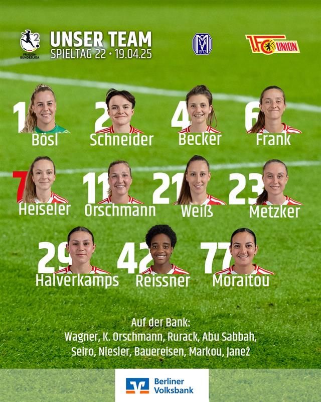 Unsere Cheftrainerin Ailien Poese schickt heute die folgende Elf auf den Rasen: