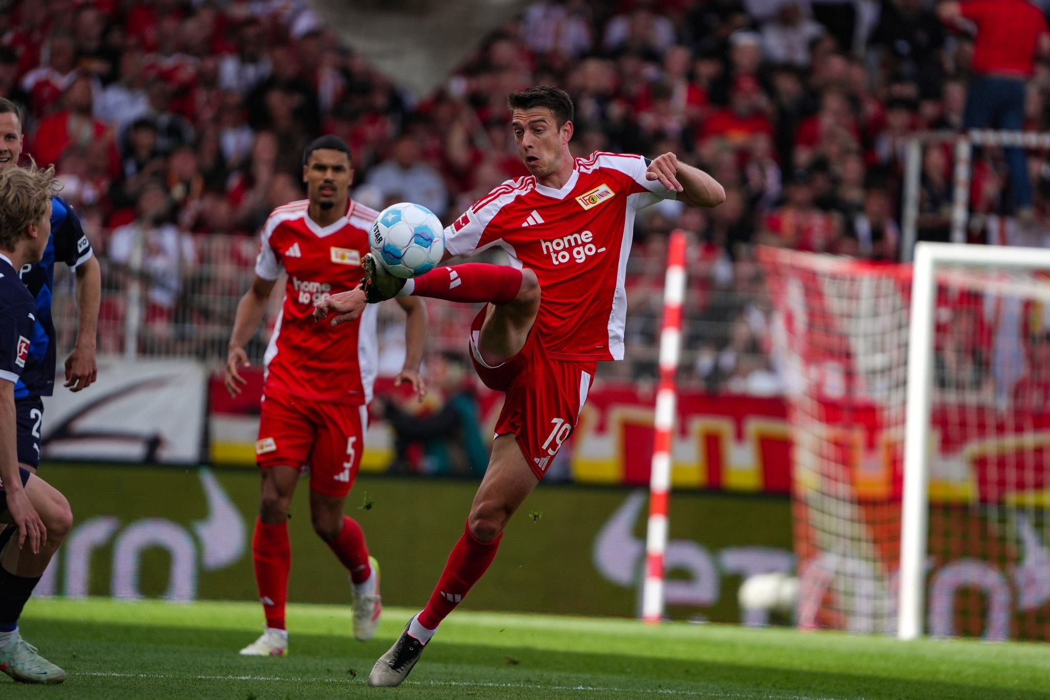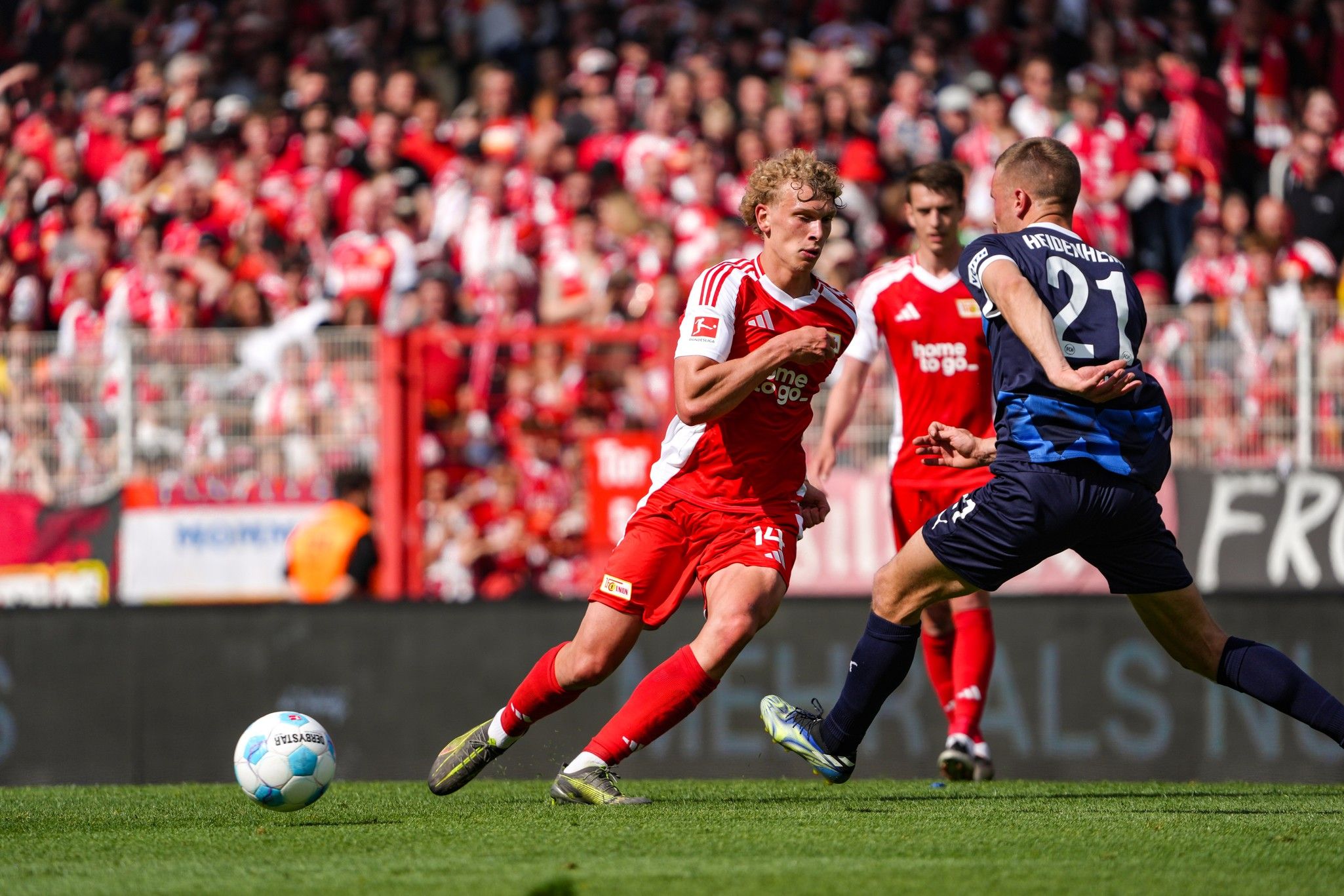 Personal: Unions Cheftrainer Steffen Baumgart musste am vorletzten Spieltag auf Diogo Leite, Aljoscha Kemlein, Wooyeong Jeong und Robert Skov verzichten. Die Startaufstellung veränderte sich im Vergleich zum 2:2 gegen Bremen nur auf einer Position: Der Ausgleichstorschütze Laszlo Benes rotierte für Andras Schäfer in die erste Elf.