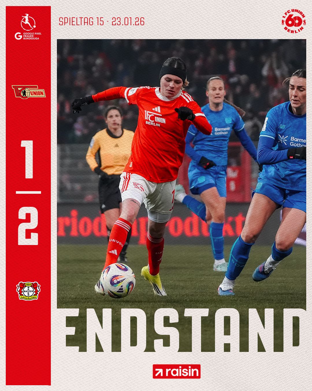 Im Sommer sorgte vor allem die Verpflichtung der Mittelstürmerin Vanessa Fudalla vom Konkurrenten RasenBallsport Leipzig für Aufsehen. Nach einem halben Jahr lässt sich bereits ein erstes Fazit ziehen: Die 24-Jährige hatte keinerlei Anpassungsschwierigkeiten bei ihrem neuen Verein. Mit acht Saisontreffern ist sie nicht nur mit deutlichem Abstand beste Torschützin ihres Teams, sondern belegt auch Rang fünf in der Torjägerliste der Bundesliga. Gegen Union erzielte sie ihren ersten Treffer im Bayer-Dress. Das soll sich heute bitte nicht wiederholen. - 18:10