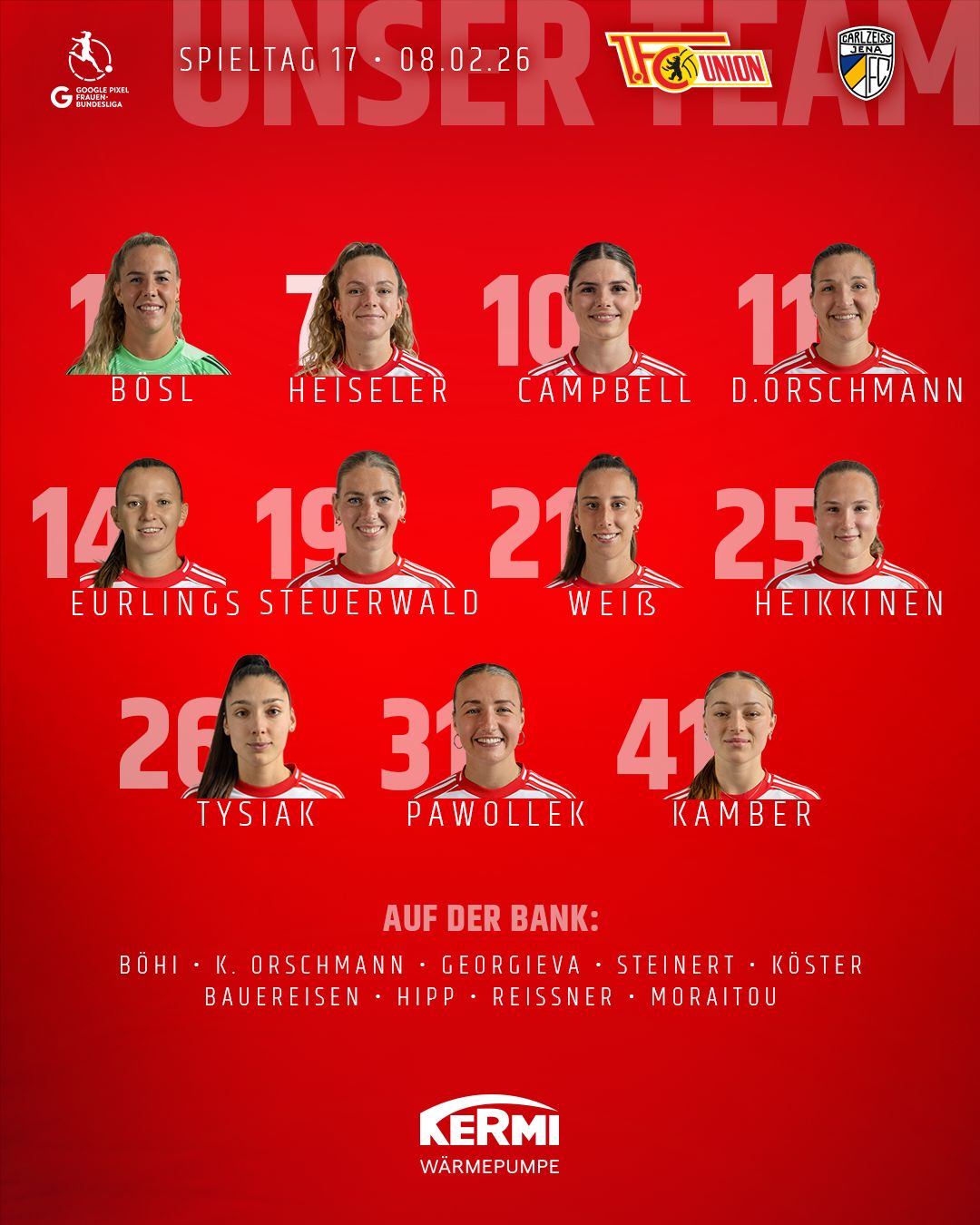 Ost-Duell im Stadion An der Alten Försterei! Zum 17. Spieltag der Frauen-Bundesliga empfangen wir den FC Carl Zeiss Jena, mit dem wir bekanntlich noch eine Rechnung offen haben – dazu aber später mehr. Es ist kalt, es ist matschig, es ist glatt und dementsprechend bin ich umso glücklicher, gerade bereits die ersten tapferen Unioner vor den Eingängen gesehen zu haben, die sich das Spiel unserer Profi-Frauen heute nicht entgehen lassen. Für alle, die die Partie vor dem Bildschirm verfolgen, gibt es hier gleich das Wichtigste zur Begegnung.