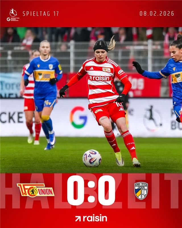 Die beiden Teams standen sich in dieser Saison bereits zweimal gegenüber – einmal in der Hinrunde der Bundesliga und einmal im Achtelfinale des DFB-Pokals. Die Gefühlswelten der Unionerinnen hätten nach diesen beiden Partien kaum unterschiedlicher sein können: Während das Ligaspiel in der letzten Minute spektakulär mit 2:1 gewonnen wurde, setzte es im DFB-Pokal eine bittere 0:1-Niederlage. Ich kann mich noch sehr gut daran erinnern, wie niedergeschlagen wir alle an diesem Nachmittag im November waren. Umso mehr wird die Mannschaft heute nach Revanche trachten. Jena wird im Viertelfinale im März übrigens auf den einzigen verbliebenen Zweitligisten im Wettbewerb, den SC Sand, treffen. Toll.