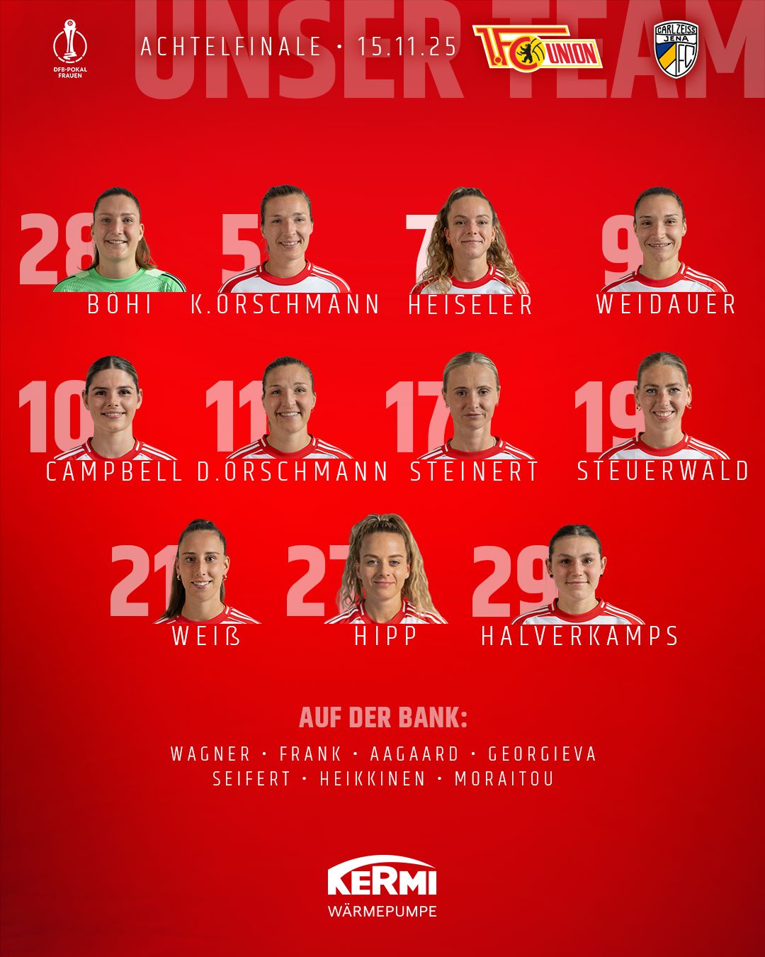 Drei Niederlagen in sieben Tagen gab es zuletzt in der Liga – das Programm mit Bremen, Wolfsburg und Bayern hatte es aber auch wirklich in sich. Insofern ist es vielleicht auch etwas erfrischend, dass es heute nicht nur eine Pause vom Liga-Alltag gibt, sondern auf dem Papier auch der Gegner mit dem FC Carl Zeiss Jena etwas schlagbarer erscheint. Was heißt hier überhaupt auf dem Papier? Am 4. Spieltag konnten wir schließlich in Jena schon mit 2:1 durch einen späten Siegtreffer von Dina gewinnen.