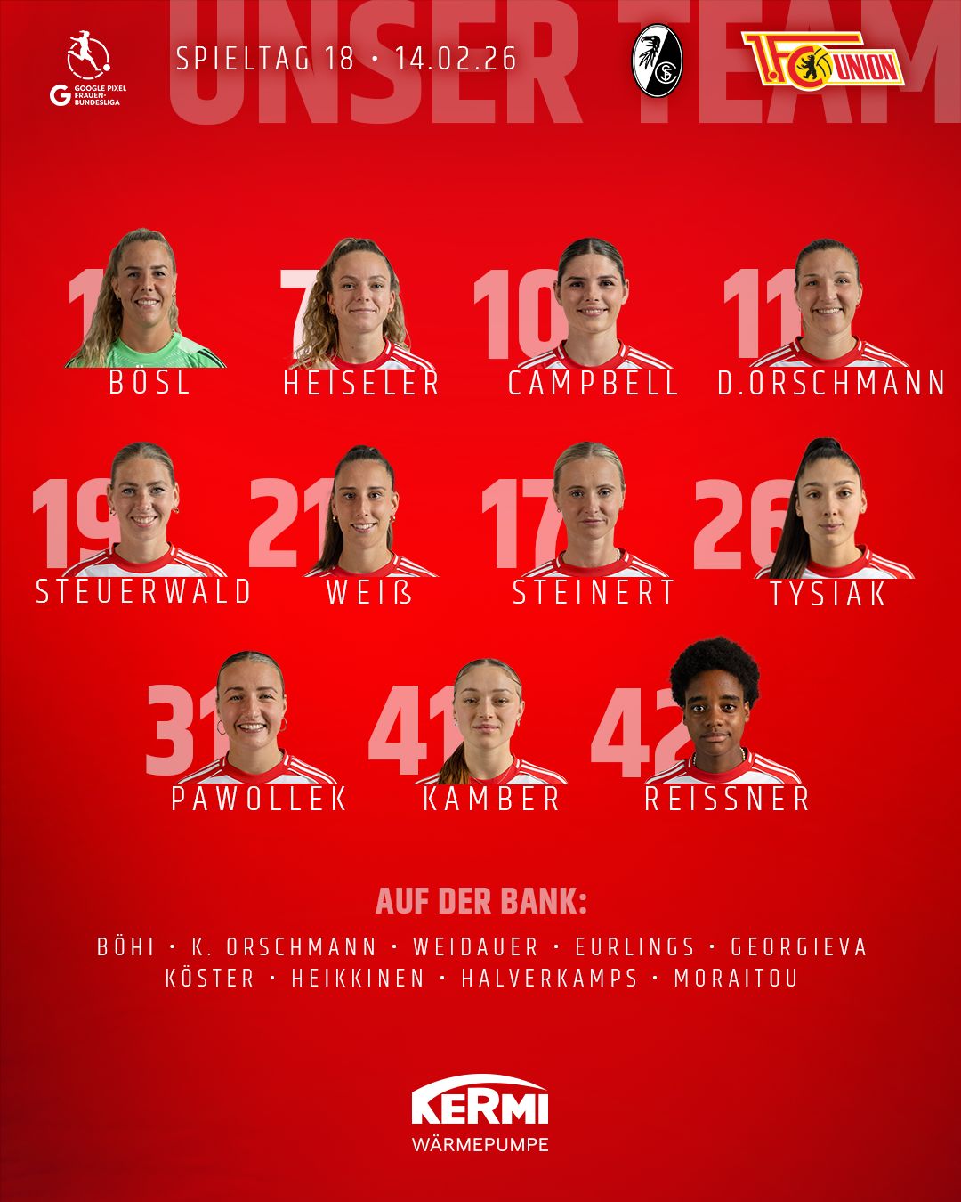 Unsere Cheftrainerin Ailien Poese schickt heute die folgende Elf auf den Rasen: