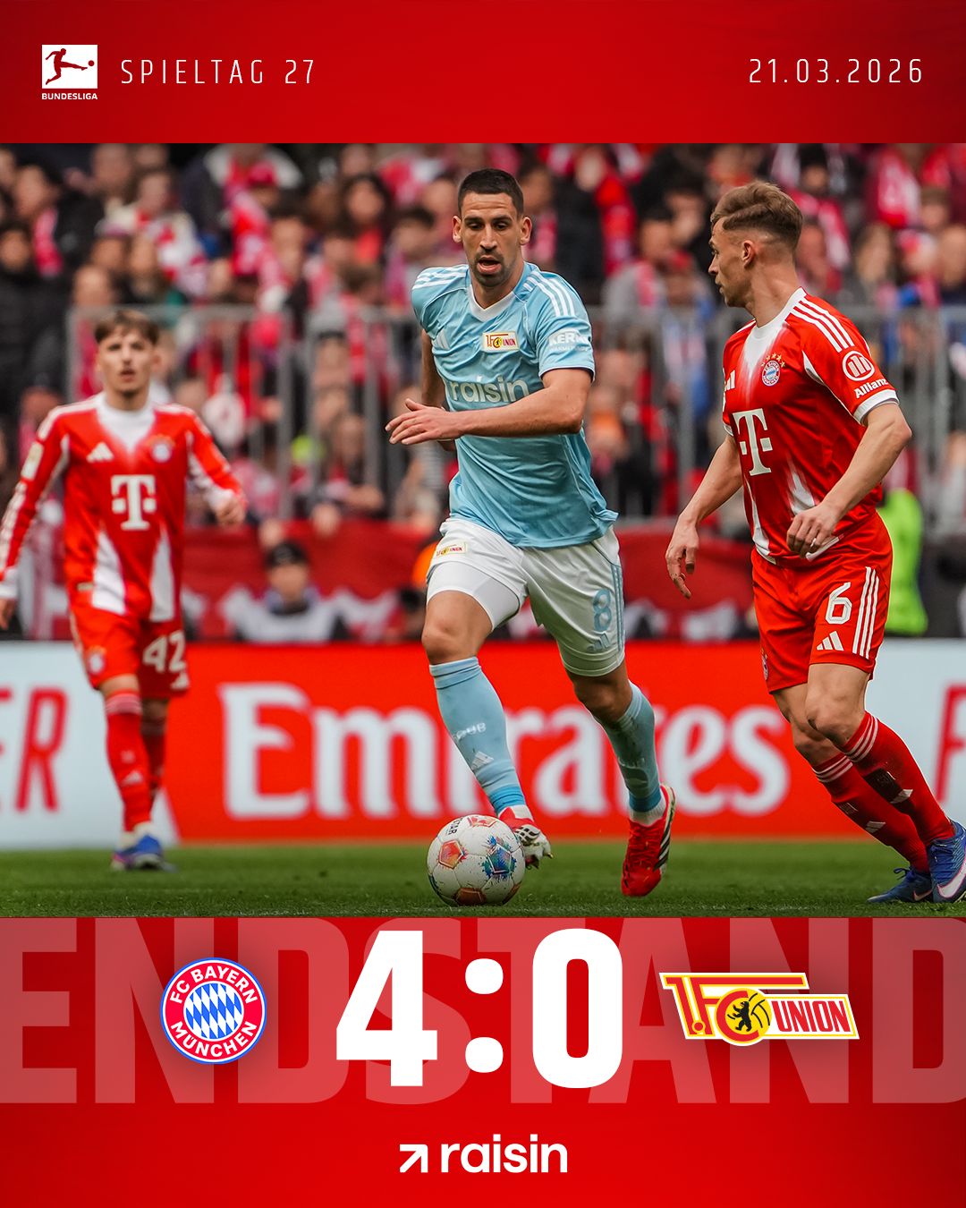 Tja, was soll ich euch erzählen? Natürlich hoffst du jedes Mal auf eine Überraschung, wenn du gegen die Bayern spielst, aber am Ende ist es selten der Fall. Wir waren diese Saison zweimal sehr nah dran, heute sind wir etwas weiter weg. Gehört dazu! Der April wird wichtig, da müssen wir nochmal richtig ran, aber jetzt erstmal zwei Wochen verschnaufen. Wir sehen uns im Wohnzimmer gegen Pauli.