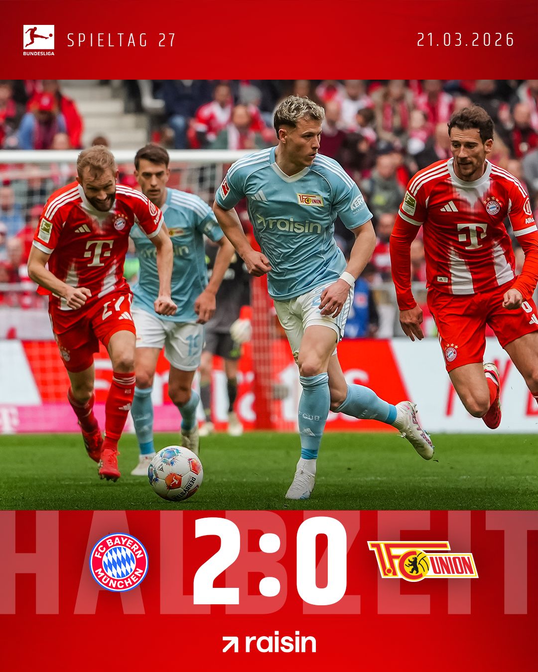 Kurz vor der Pause noch das 2. durch Gnabry. Nach Kimmich-Flanke rutscht der Ball zu ihm durch und dann haben unsere Jungs aus der kurzen Distanz auch keine Abwehrchance.