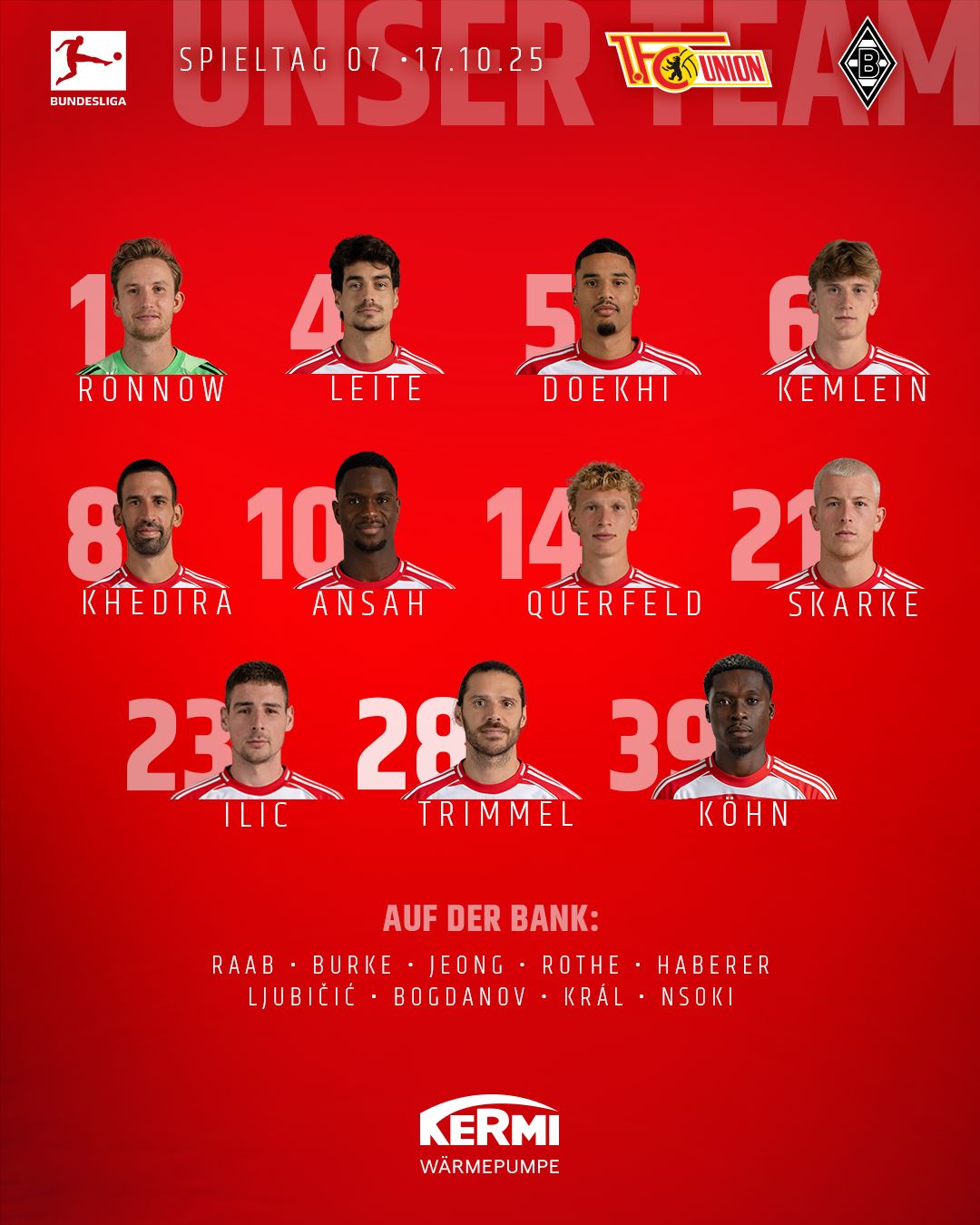Cheftrainer Steffen Baumgart schickt heute die folgende Elf auf den Rasen: