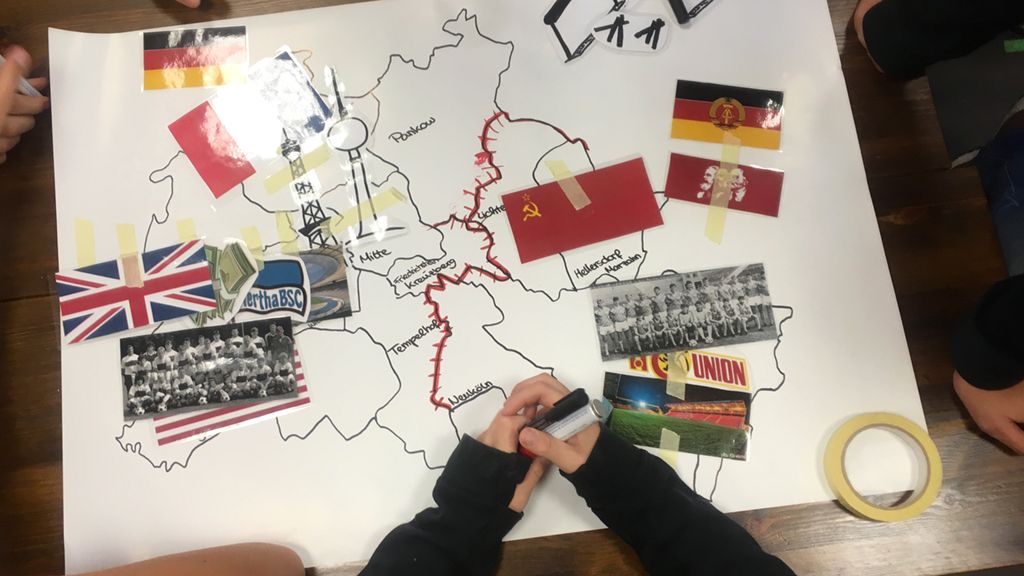 Wer waren die vier Besatzungsmächte und wo genau stand eigentlich die Mauer? Wie war es damals im Osten mit dem Fußball? Eine Schulklasse des Köpenicker Emmy-Nöther-Gymnasiums stellt sich genau diese Fragen im Rahmen ihrer Projekttage beim 1. FC Union Berlin.