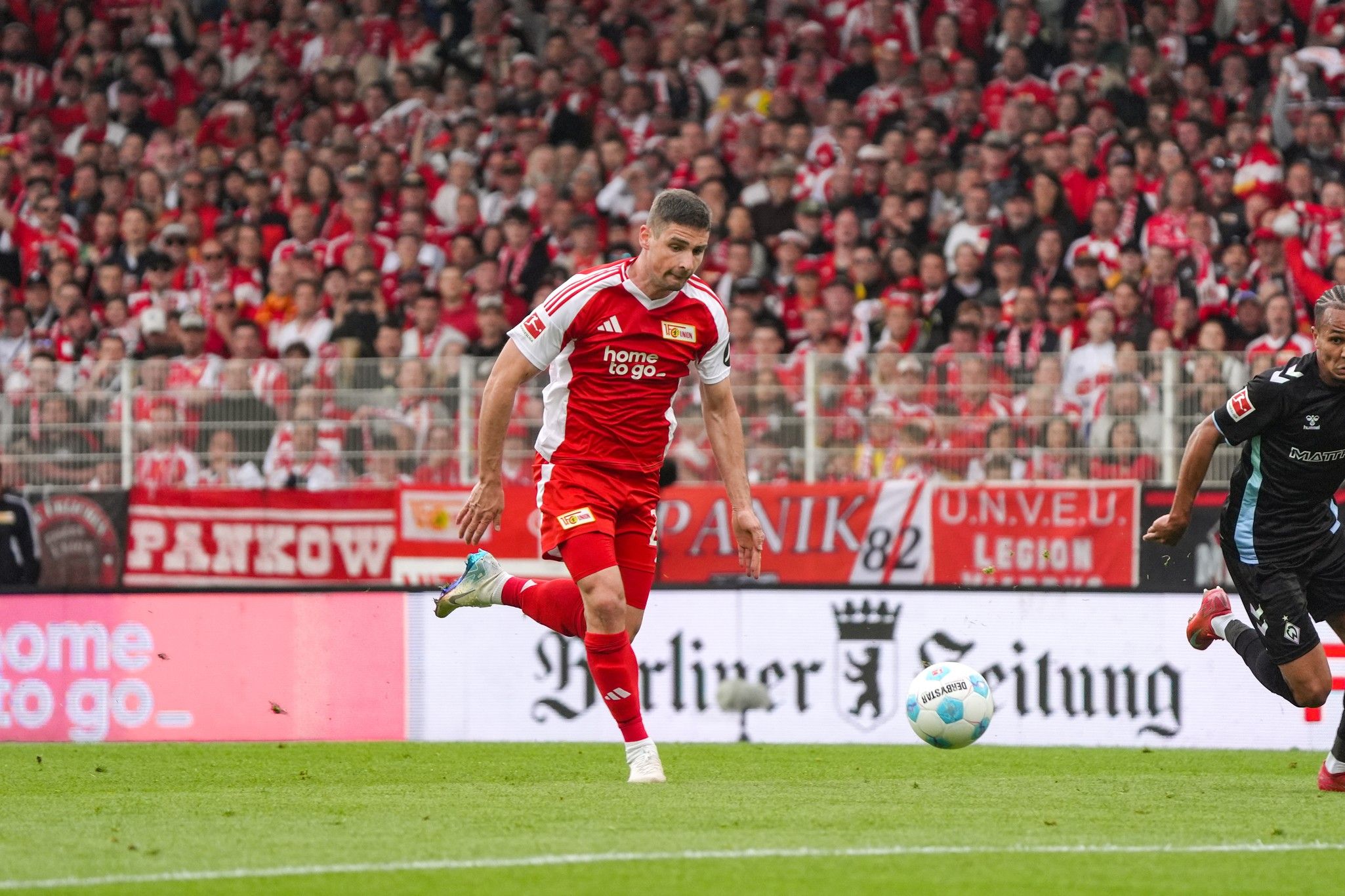 Das vorletzte Heimspiel der Bundesligasaison 2024/25 der Profimannschaft der Männer des 1. FC Union Berlin endet mit einem 2:2 gegen den SV Werder Bremen. Die Gäste aus der Hansestadt gehen durch den Dänen Jens Stage mit 0:2 in Führung, doch Unions Linksverteidiger Tom Rothe verkürzt noch vor dem Seitenwechsel. Im zweiten Durchgang sorgt Laszlo Benes mit einem sehenswerten Treffer für den 2:2-Endstand.