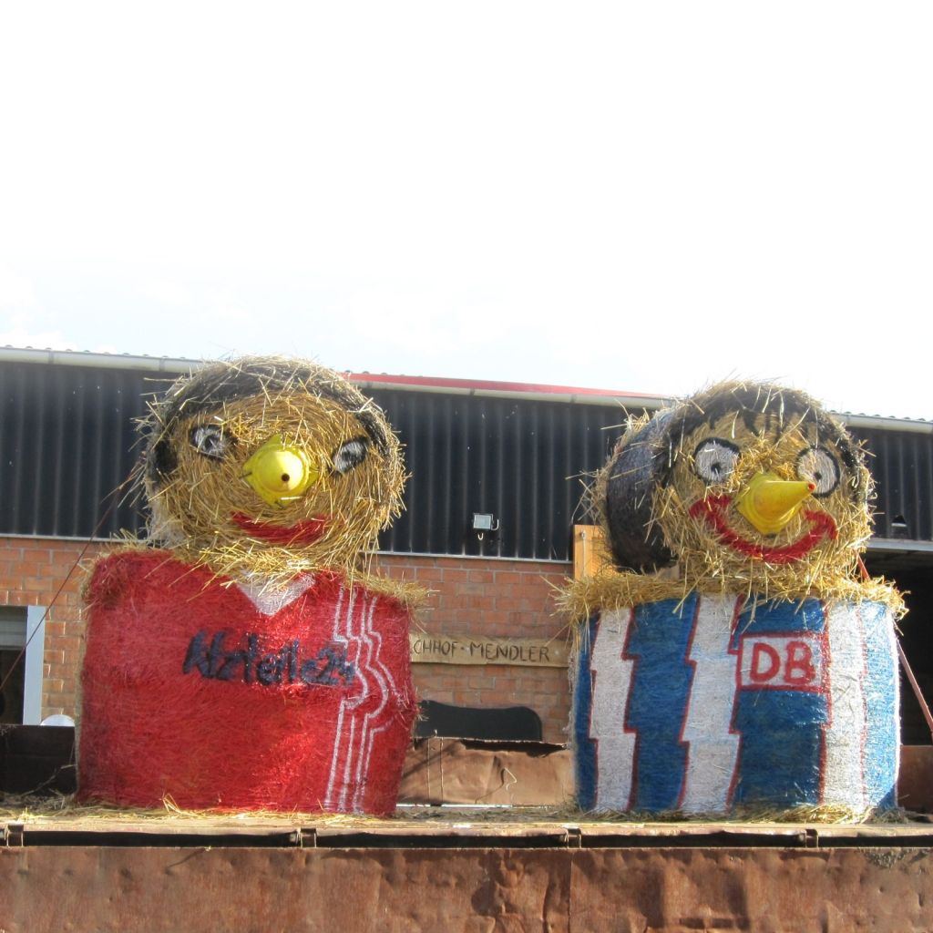 In Schönefeld an der Stadtgrenze Berlins gestaltete der Milchhof Mendler zwei weithin sichtbare Strohskulpturen zum Derby. Eine schöne Idee, findet die Heimseiten-Redaktion. Das Foto machte Olaf Schenk.