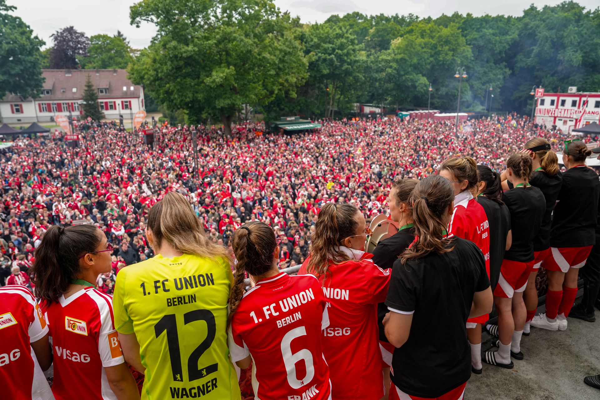 Der Aufstieg der Frauen und der Klassenerhalt der Männer wurden anschließend gemeinsam ausgiebig mit den Fans auf dem Stadion-Balkon gefeiert – eine Party, die bis tief in die Nacht andauerte. Es war ein Meilenstein, auf den beim 1. FC Union Berlin, spätestens seit der Professionalisierung der Frauenabteilung, alle hingearbeitet hatten.