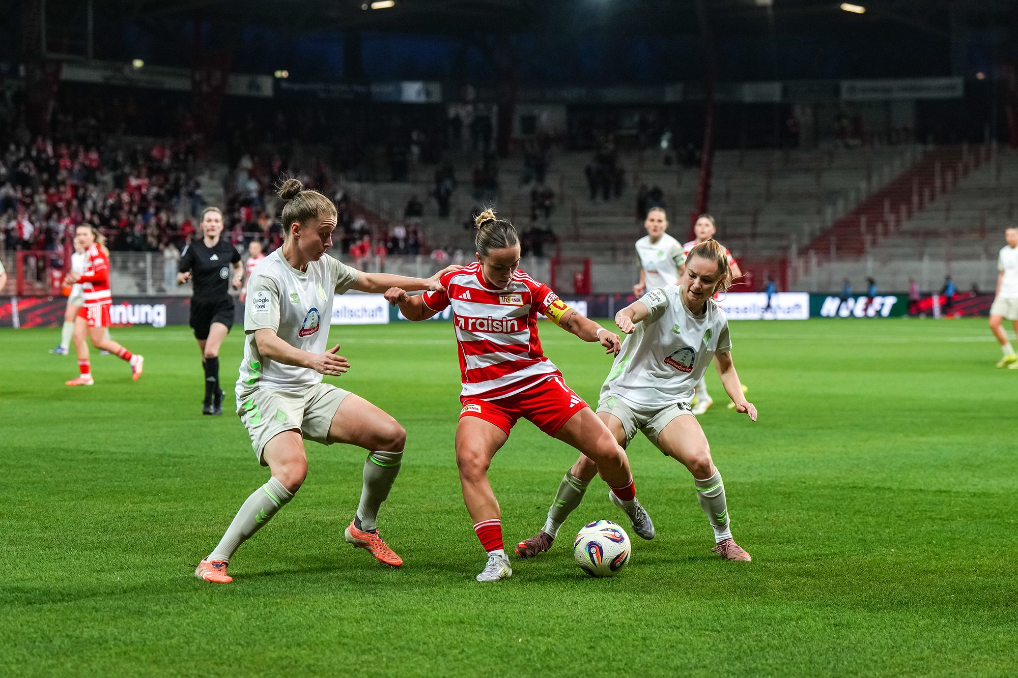 Die Profimannschaft der Frauen des 1. FC Union Berlin setzt sich zum Abschluss des 21. Spieltags der Google Pixel Frauen-Bundesliga deutlich mit 4:1 gegen den SV Werder Bremen durch. Die Eisernen dominieren im Stadion An der Alten Försterei das Geschehen und gehen nach 18 Minuten durch einen Treffer von Lia Kamber in Führung. In der 29. Spielminute hält Nadine Böhi mit einem parierten Handelfmeter die Führung fest, ehe ein Eigentor (40.) und ein Treffer von Lisa Heiseler (45+1.) für den 3:0-Halbzeitstand sorgen. Im zweiten Durchgang erhöht Hannah Eurlings in der 78. Minute auf 4:0, ehe Werder in den Schlussminuten noch Ergebniskosmetik betreibt (85.).