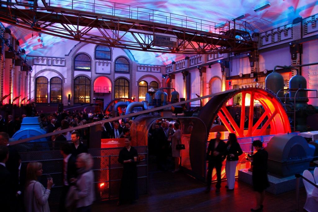 Die gewaltigen Pumpmaschinen des alten Wasserwerkes am Hohenzollerndamm bildeten die prächtige Kulisse für das Sponsorentreffen des 1. FC Union Berlin.