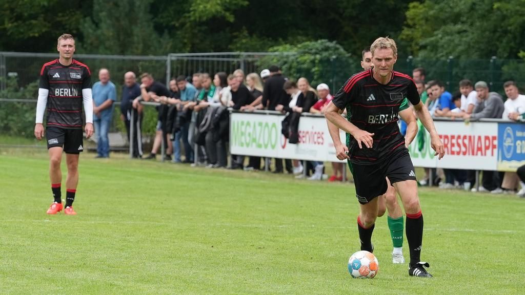Am Sonntag rotierte Trainer Schwarz gegenüber dem Vortag etwas. So wurde das Team mit Björn Jopek und Chinedu Ede, den beide Traditionself-Neuzugängen des Sommers 2025, etwas verjüngt. Mit dennoch etwa 46 Jahren im Schnitt blickte das Traditionsteam in die Augen eines ehrgeizigen und jungen Kaders der Gastgeber, der im Schnitt unter 25 Jahren lag. Die SG Schulzendorf war agil, mit großem Eifer und Tempo von Beginn an spielbestimmend. Dagegen wehrten sich die Oldies aus Köpenick mit der Ausnutzung des großen Spielfeldes, einem cleveren Defensiv-Verhalten und sicheren Ballstafetten. Die optische Überlegenheit der jungen Gastgeber führte nicht zwangsweise zu vielen Tormöglichkeiten. Bei der einzig richtigen Torchance der Schulzendorfer blitzte dann das Können von „Altmeister“ Oskar Kosche auf. Er schnappte sich in der Situation den Ball ganz sauber und sicher vom Fuß des Schulzendorfer Stürmers. Ein anerkennendes Raunen der ca. 1.200 Zuschauer im weiten Rund war deutlich zu vernehmen.