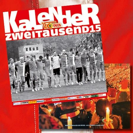 Im Fanshop des 1. FC Union Berlin (Forum Köpenick) ist ab sofort der Jahreskalender 2015 erhältlich. In den Maßen 42x42 cm begleitet dieser durch das rot-weiße Jahr.