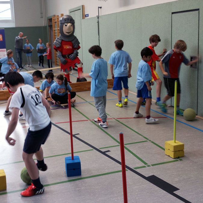 Nach dem offiziellen Akt probierten die begeisterten Kinder in der Sporthalle gleich aus, was sich mit dem neunen Spiel-, Sport- und Koordinationsmaterial anstellen lässt.