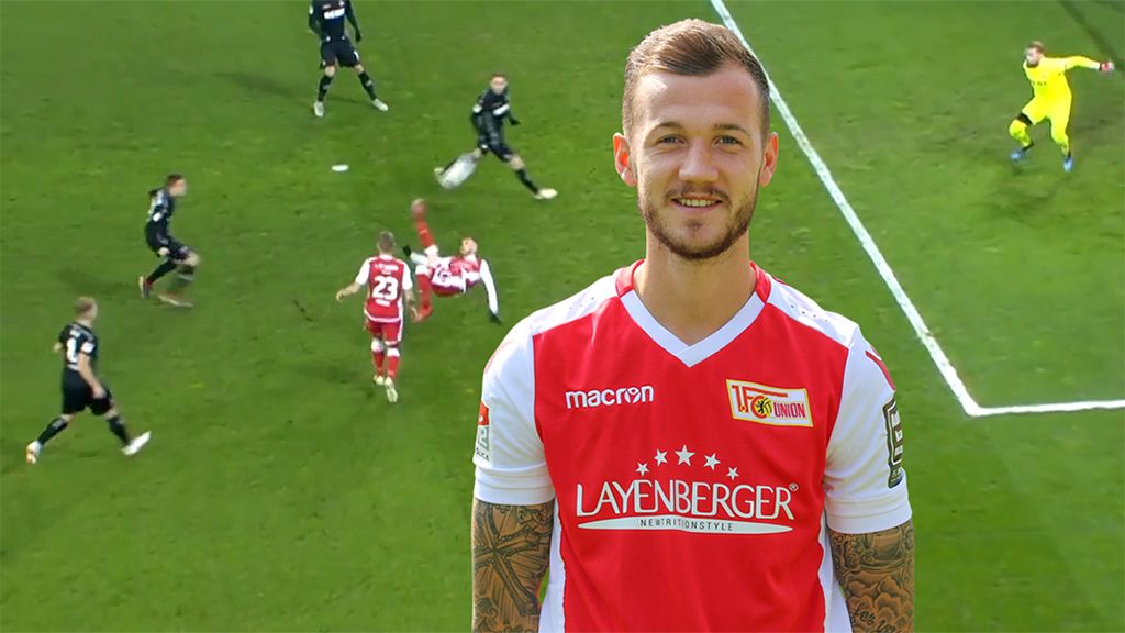 Union-Kapitän Christopher Trimmel leitete den Spielzug ein: Trimmels Ball ging zu Sebastian Polter, der auf Suleiman Abdullahi weiterleitete. Abdullahi platzierte eine Flanke im Kölner Strafraum, wo Marcel Hartel sich freigelaufen hatte. Er rannte dem Ball entgegen, legte die Kugel per Brustannahme nach oben, drehte sich etwas, und setzte zum Fallrückzieher an. Das Stadion An der Alten Försterei hielt für einen Sekundenbruchteil den Atem an – und brach dann in Jubel aus, als der Ball über Kölns Keeper segelte.