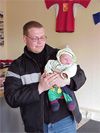 In Begleitung seiner Eltern weilte am Freitag Jonas Manuel Oberheidtmann im Fanshop des 1. FC Union Berlin und beantragte die Vereinsmitgliedschaft. Jonas Manuel - hier auf dem Arm seines Vaters Manuel Roemer - wurde am 23. März geboren und hat sich bereits nach 20 Tagen entschlossen, dem 1. FC Union beizutreten. Herzlich willkommen.