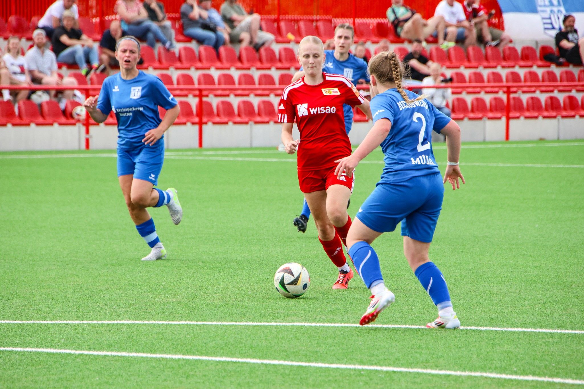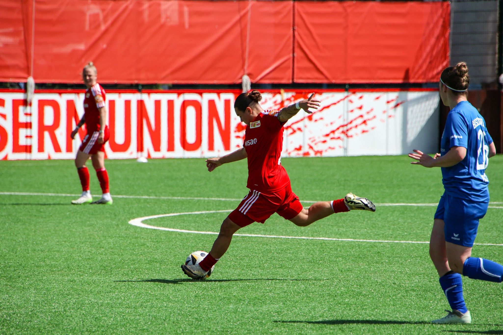 Die Elf von Anja Matthes erledigte ihre Hausaufgaben souverän: In der 22. Minute erhöhte Lina Krauss mit einem sehenswerten Schuss aus 25 Metern auf 2:0. In der 36. Minute legte die Mittelfeldspielerin nach einem schnellen Doppelpass ihren zweiten Treffer nach. Trotz der elf Tore an diesem Nachmittag sollte es zugleich der einzige Doppelpack des Spiels bleiben. Insgesamt trugen sich bei Union zehn verschiedene Spielerinnen in die Torschützenliste ein.