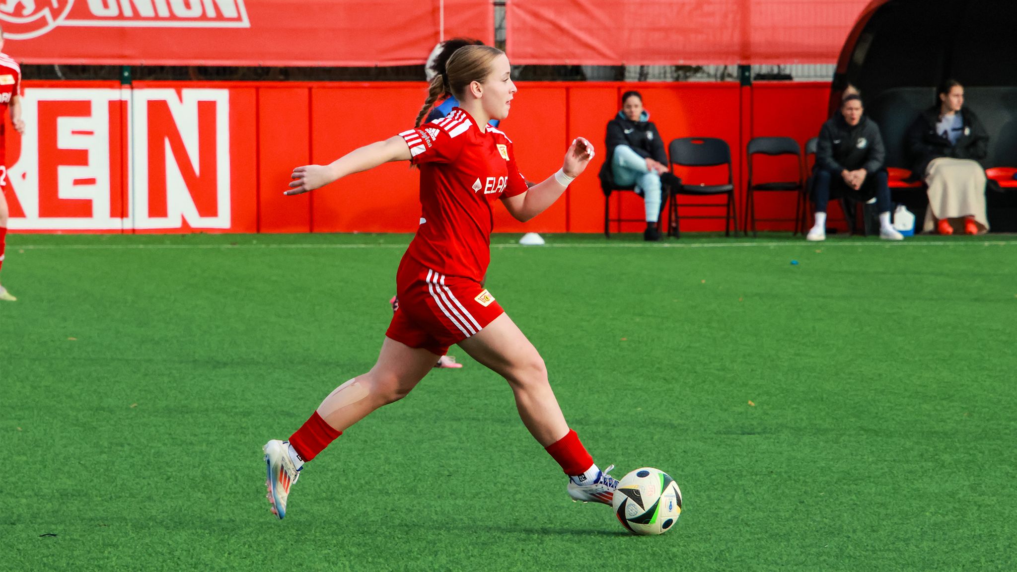 Mit dem ersten Torschuss im gesamten Spiel nach fast 30 Minuten konnte Elisa Spolaczyk die Unionerinnen schließlich direkt in Führung bringen (29.). Nach einem Ballgewinn an der Mittellinie schalteten die Rot-Weißen über Sandra Weihmann und Lina Krauss schnell um, ehe schließlich Spolaczyk die Kugel an der Strafraumkante erhielt und aus 16 Metern ins Netz beförderte.