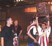 Ab 20.00 Uhr trafen sich dann die Sponsoren des 1. FC Union im Nike-Käfig unter dem Reichstag, kämpften beim best of three-Turnier um die Siegertrikots. Auch zwei Profiteams mit Sandmann, Backhaus und Nikol, sowie El Akchaoui, Chifon und Okeke waren mit von der Partie.