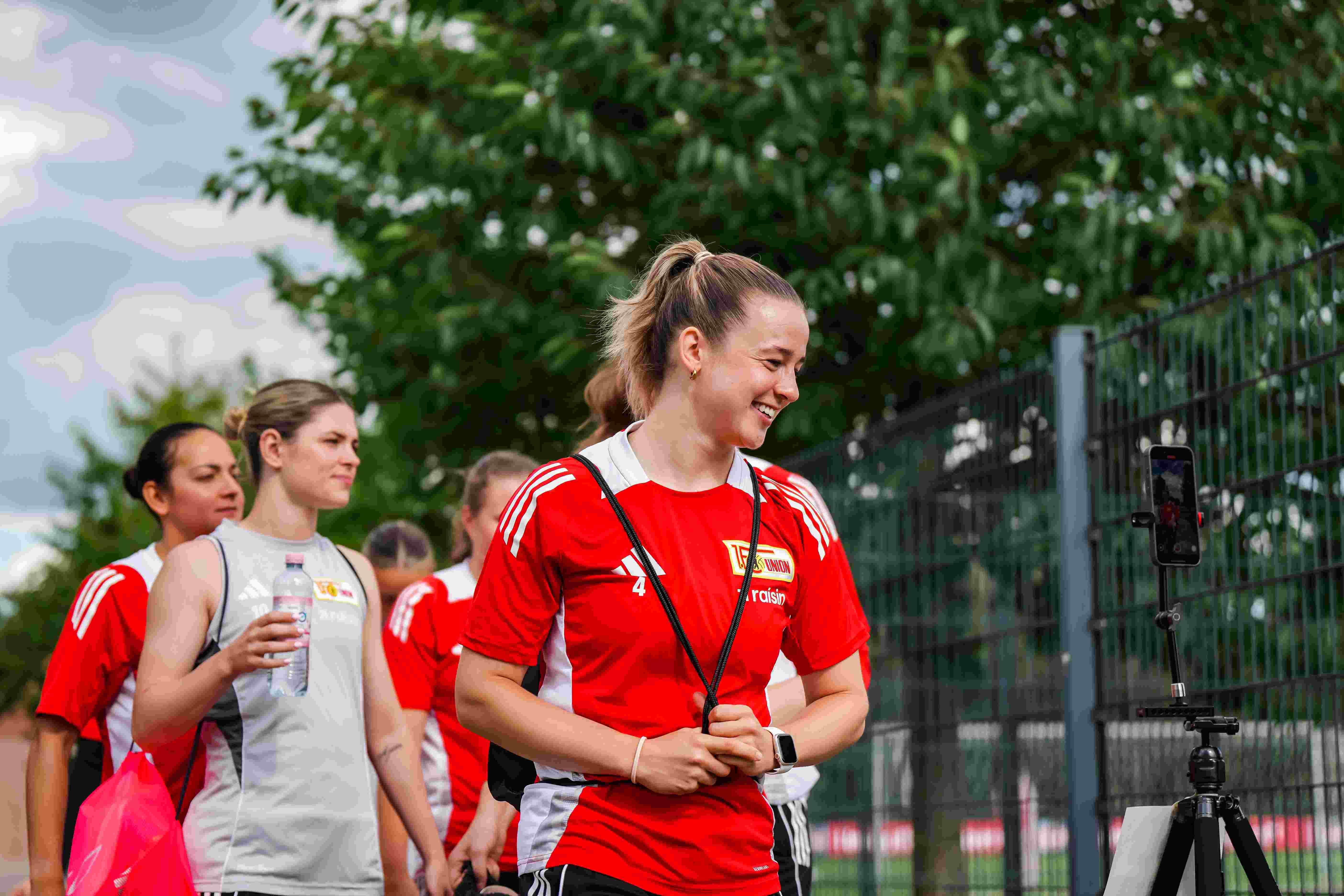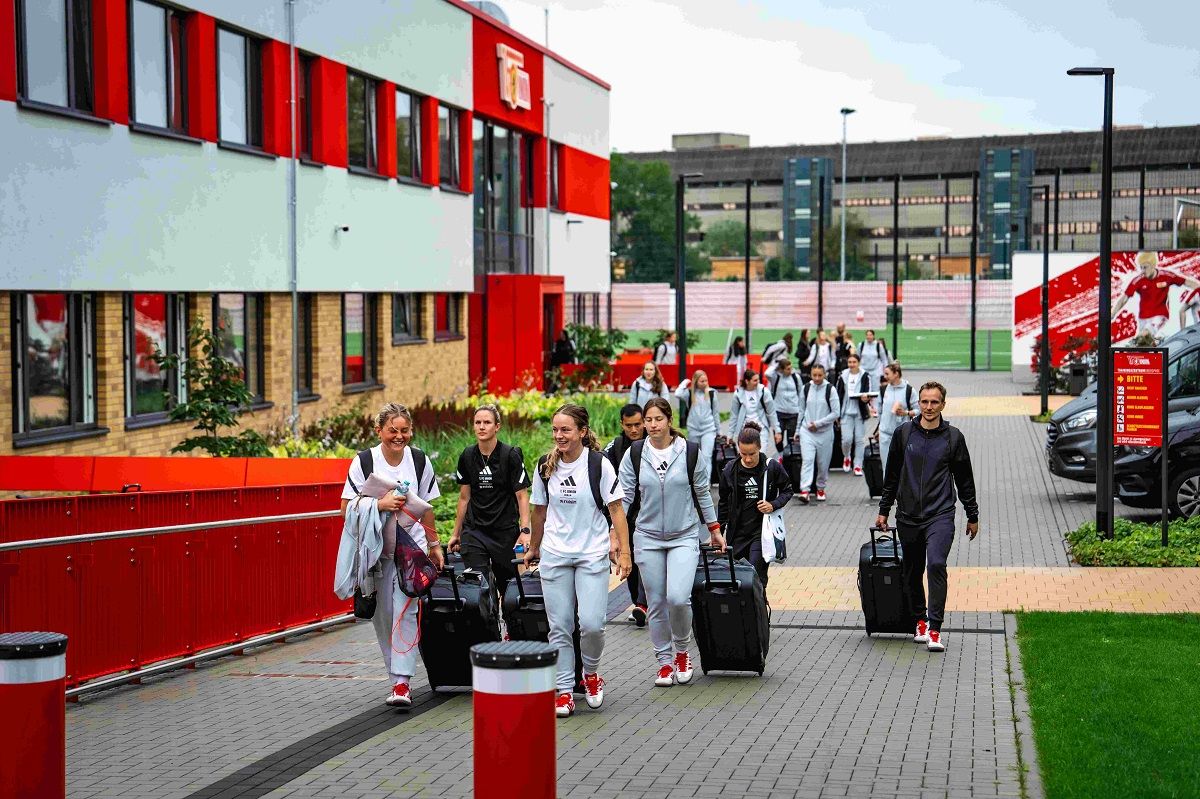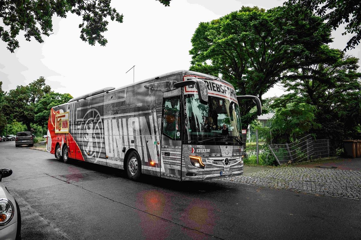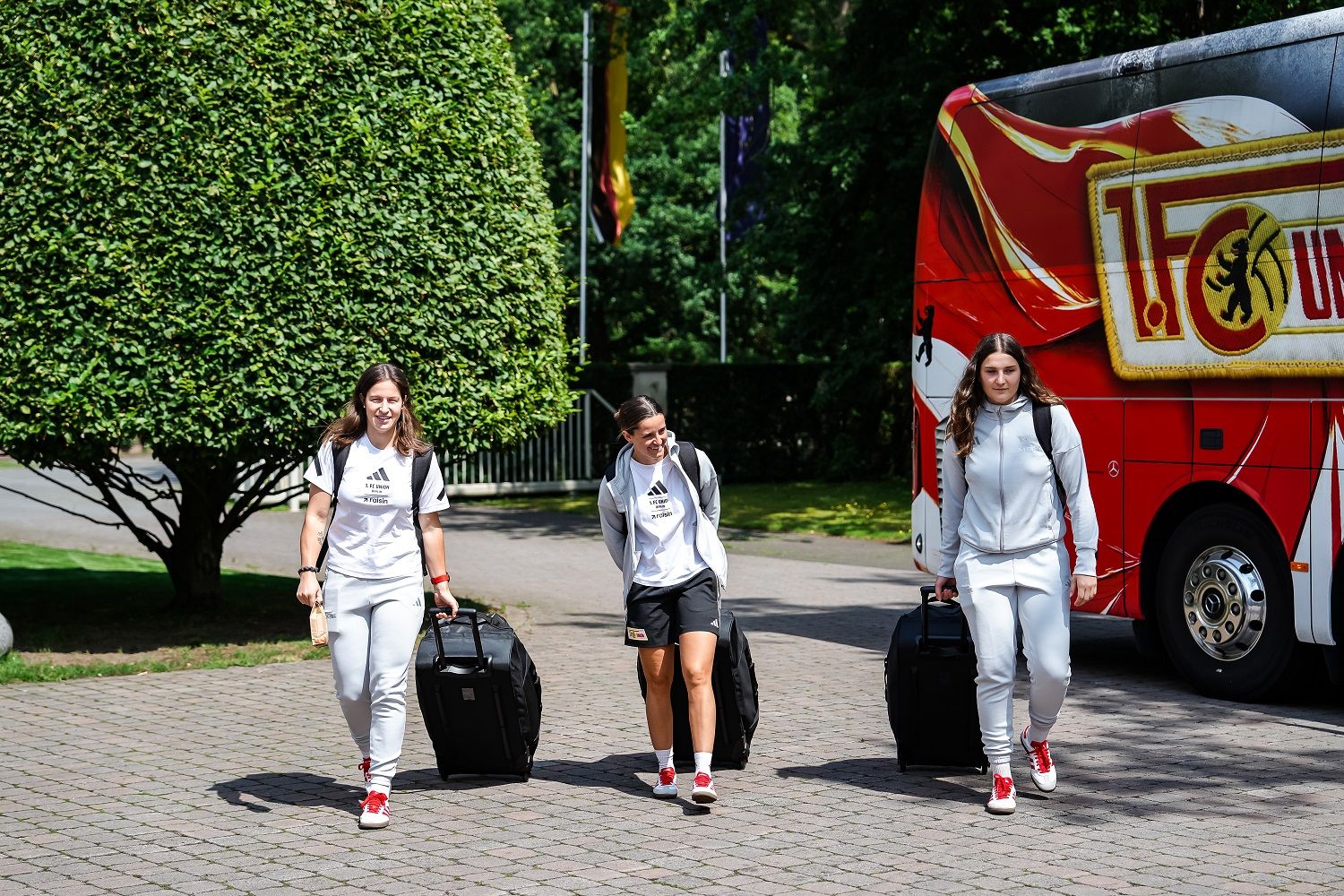 Der Mannschaftsbus brachte die Eisernen Ladies vom regnerischen Köpenick nach Klosterpforte ins Mannschaftsquartier, wo die Unionerinnen von der Sonne und dem Personal mit einem strahlenden Lächeln in Empfang genommen wurden.