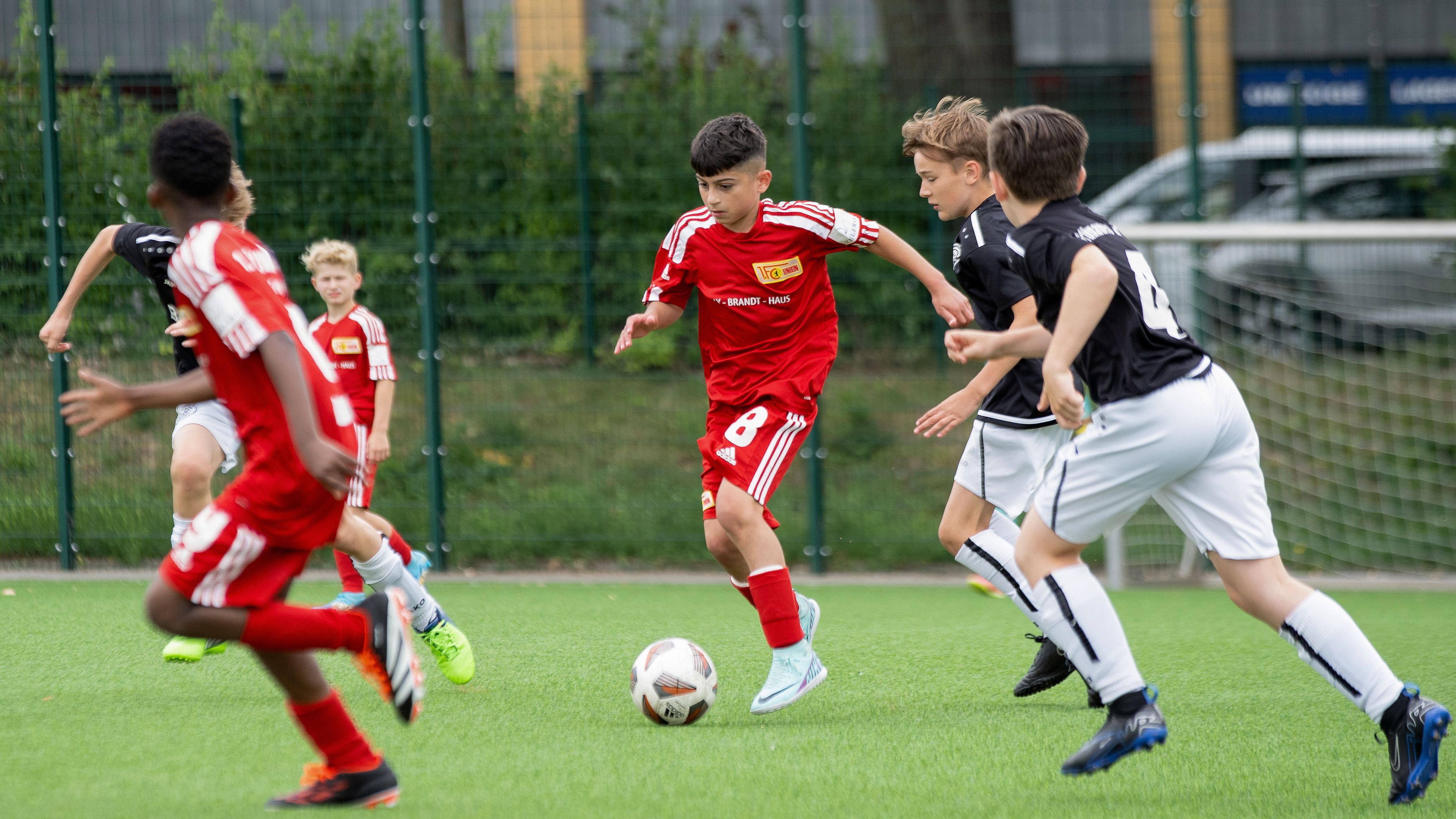 In children’s football for the E and F junior teams, general sports and basic football skills are trained in a playful and age-appropriate manner. "Short legs – short distances" is the guiding principle for all forms of play. The goal is within reach for the children, as scoring and preventing goals remains the number one rule in football. The focus of training and gameplay is on one-on-one situations. In these age groups, we provide space for experimentation and re-experimentation.