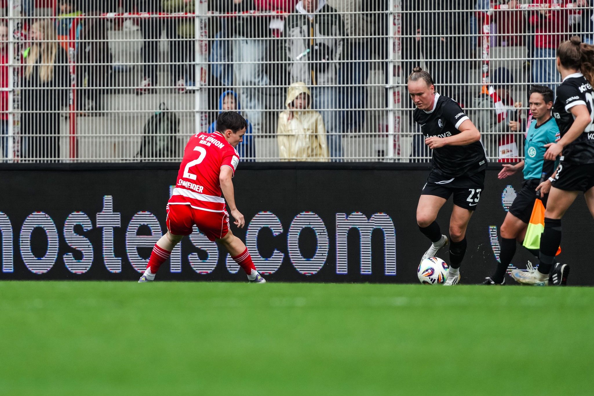 Union rallied, with Heiseler winning the ball in the middle, and Dina Orschmann dropping deeper to support her, but too often Freiburg were winning the 50-50 balls, Szenk and Maj Schneider impressing, standing up to whatever Union could throw their way. The crowd, too, seemed to need a moment to rally after the blow of the Reissner injury.