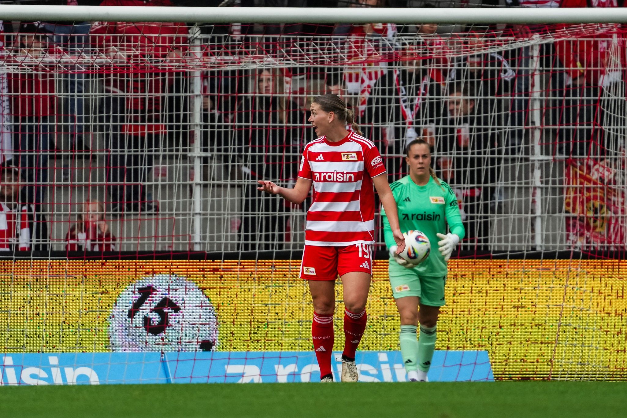 They stayed for an age after the final whistle as the team finished their huddle and came over to the Gegengerade. Reissner, on crutches, had her name sung from top to bottom of the terrace. It was a moving end to a tough day at home.
