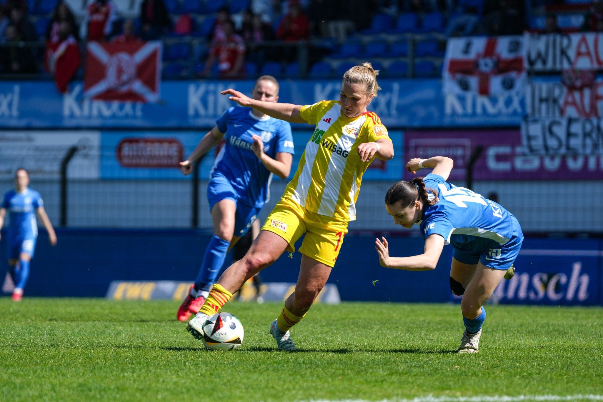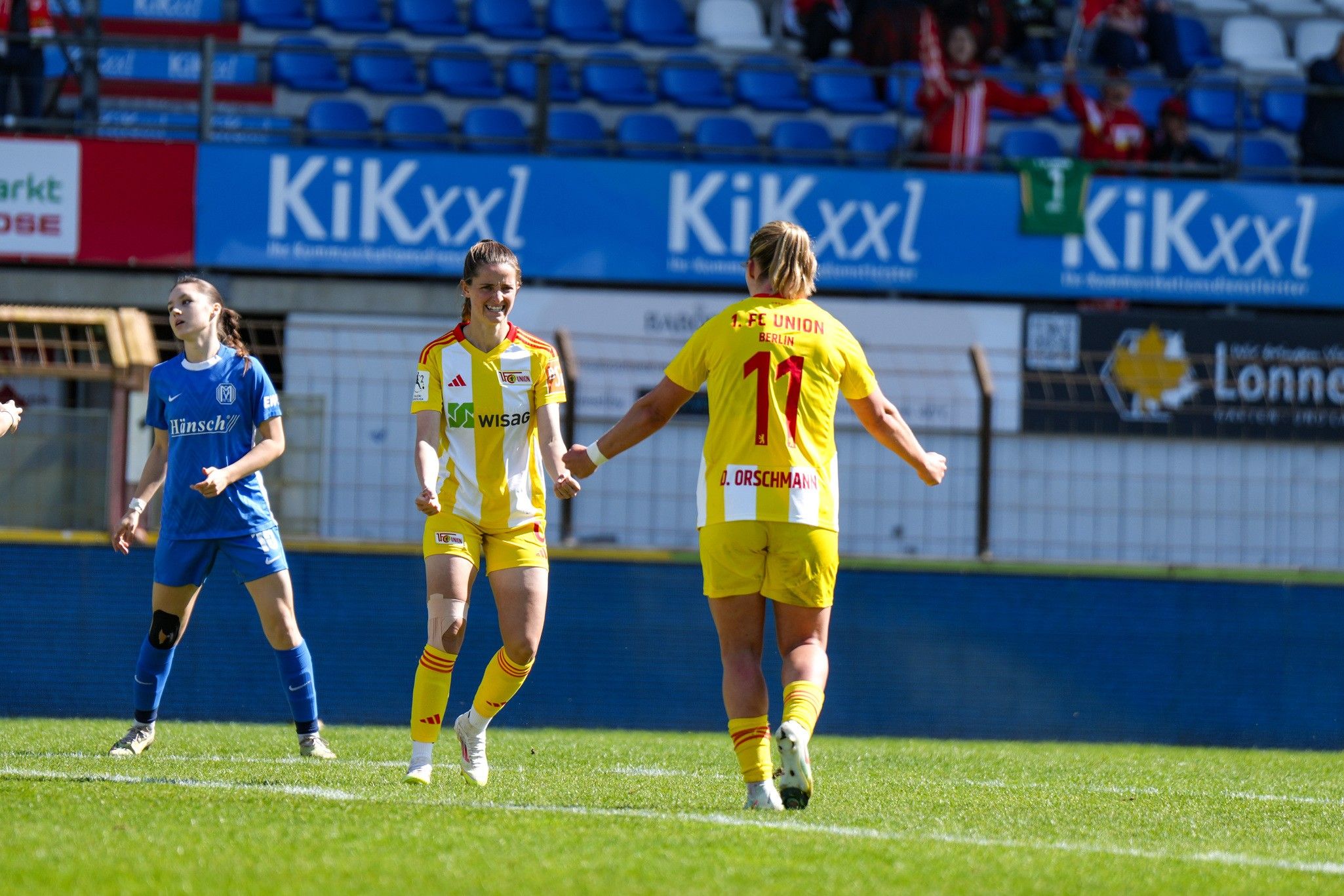 1. FC Union’s women’s team took another huge stride towards Bundesliga promotion with a fantastic 4-0 win away against SV Meppen on Saturday afternoon. After a goalless first half, Celine Frank opened the scoring, before Sarah Abu Sabbah and Lisa Heiseler, with two, joined her on the scoresheet.