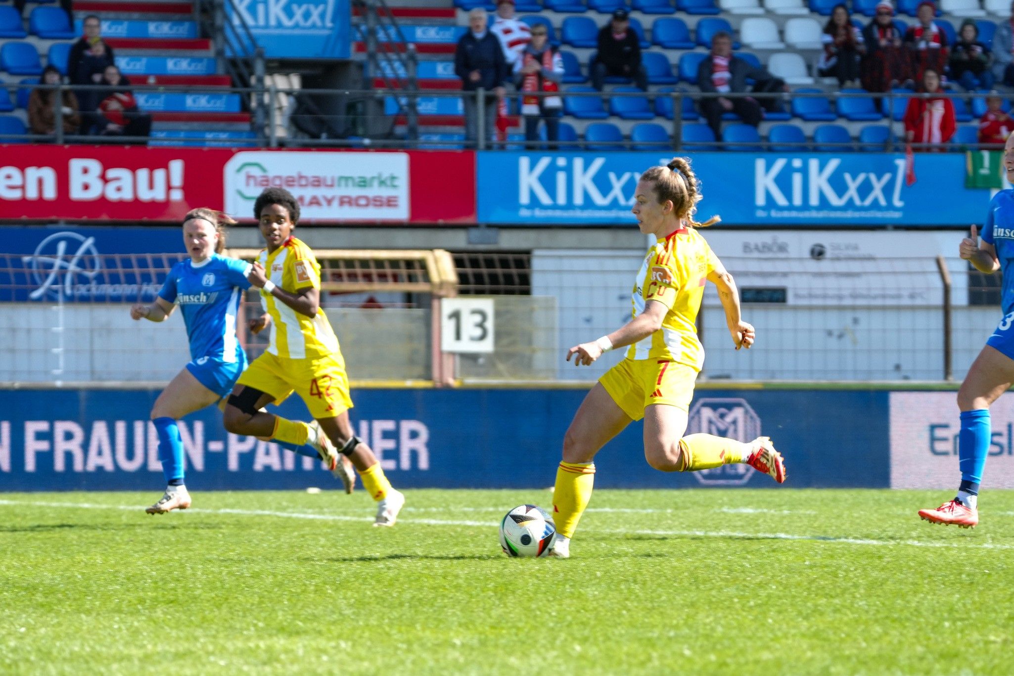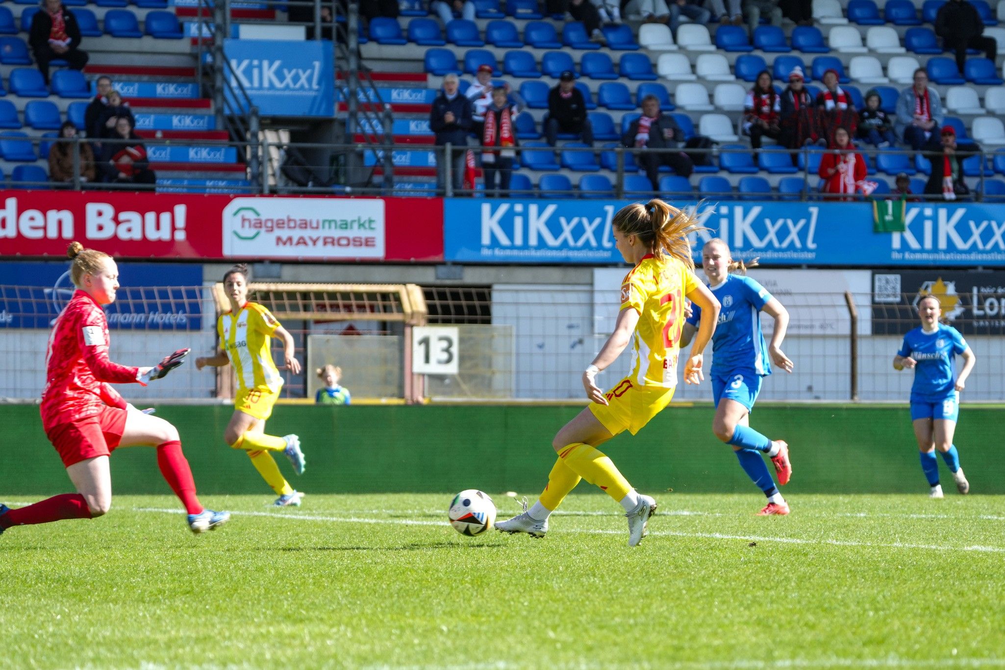 Meppen reacted, stung, knowing they needed to drag themselves back into the game, with their season starting to hang in the balance, and it took a combination of both Metzker and Reissner to dispossess Seyen as she attacked down the right.