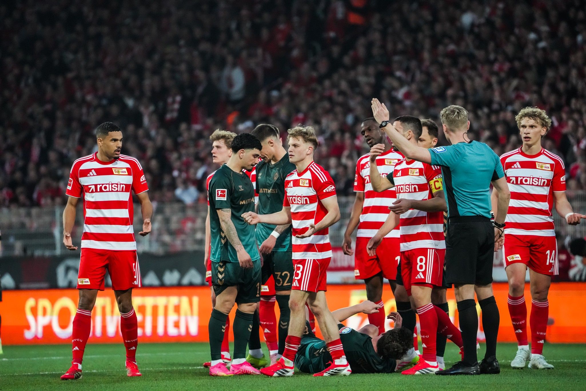 But within two minutes it all changed, for Union, as for the game, itself. Schäfer caught Stage, late but without malice or violence, halfway inside the Bremen half. If he had been quick to award the penalty, Gerach wasted less time here, the red card coming out of his pocket in a flash. After all the jubilation that still had barely subsided, Union were a man down.