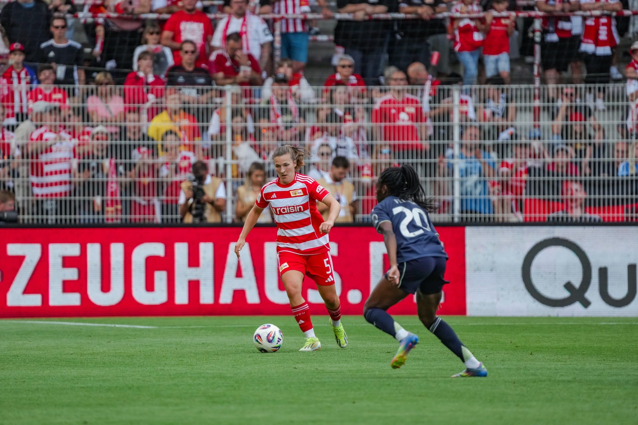 And the hosts were certainly up for it. From the off Nele Bauereisen snapped into a tackle on Eva Navarro on Real’s left, turning, bustling forwards and ultimately laying the ball off for Tanja Pawollek. The former Eintracht captain’s first touch at the Alte Försterei in Union’s colours was a delicate chip which, though artful, didn’t bend quite enough to trouble Misa’s top left-hand corner. Tomke Schenider’s tackle from behind on Caroline Weir – one of many - was sharp and to the point; Anna Weiß’s on Filippa Angeldahl was similarly so, if more necessary, stopping a neat move in its tracks that saw the ball passed along the middle in short, measured steps.