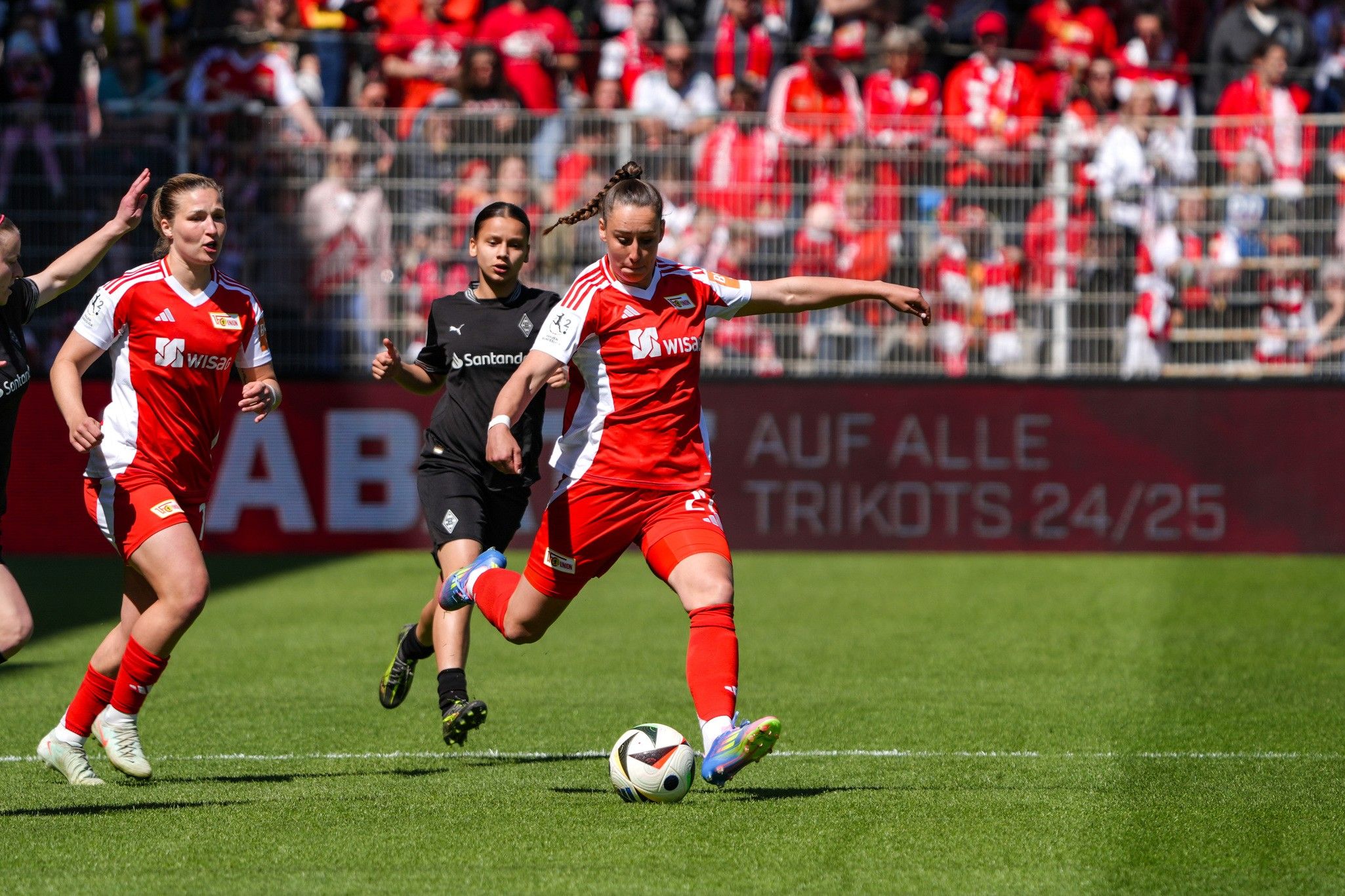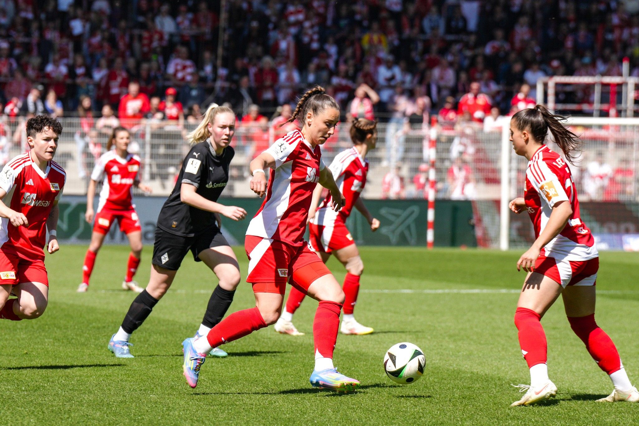 Then, as a Gladbach corner was cleared, Union made it four with a blistering break. Celine Frank, taking a grab of the shirt and a slap to the back of the head for her troubles, found Reissner who in turn played in Lisa Heiseler. Union’s captain took a touch and put it through Palmen’s legs.