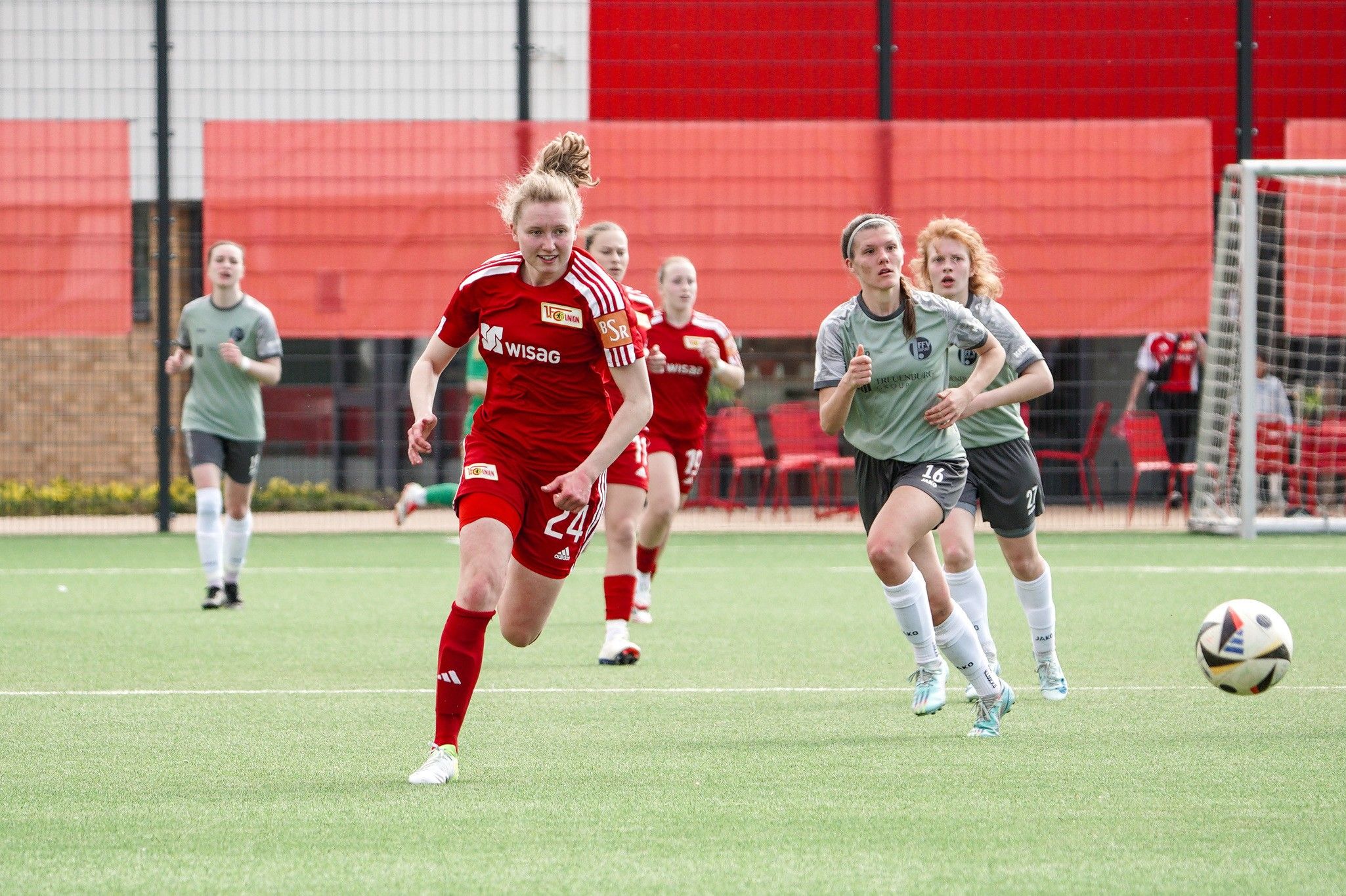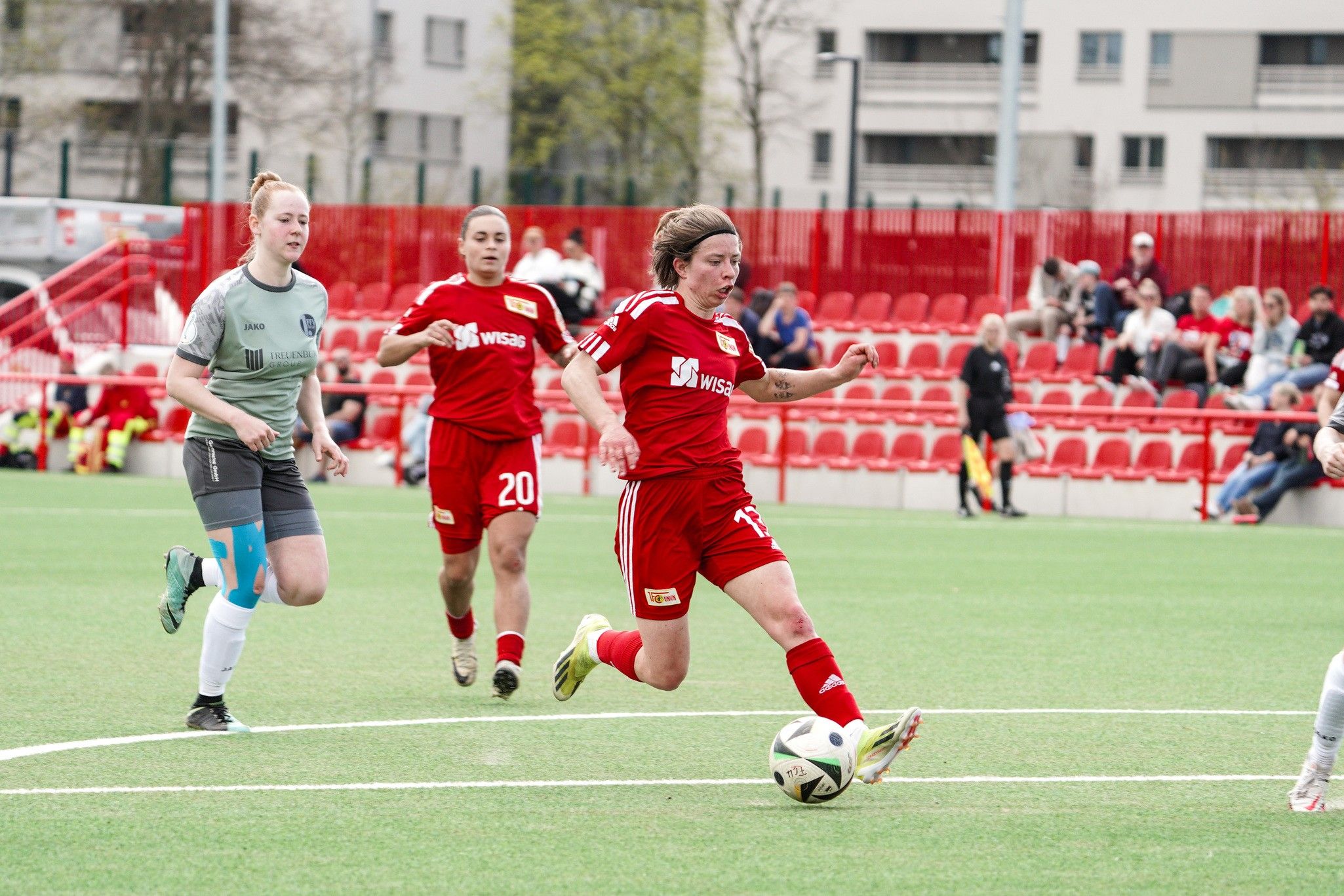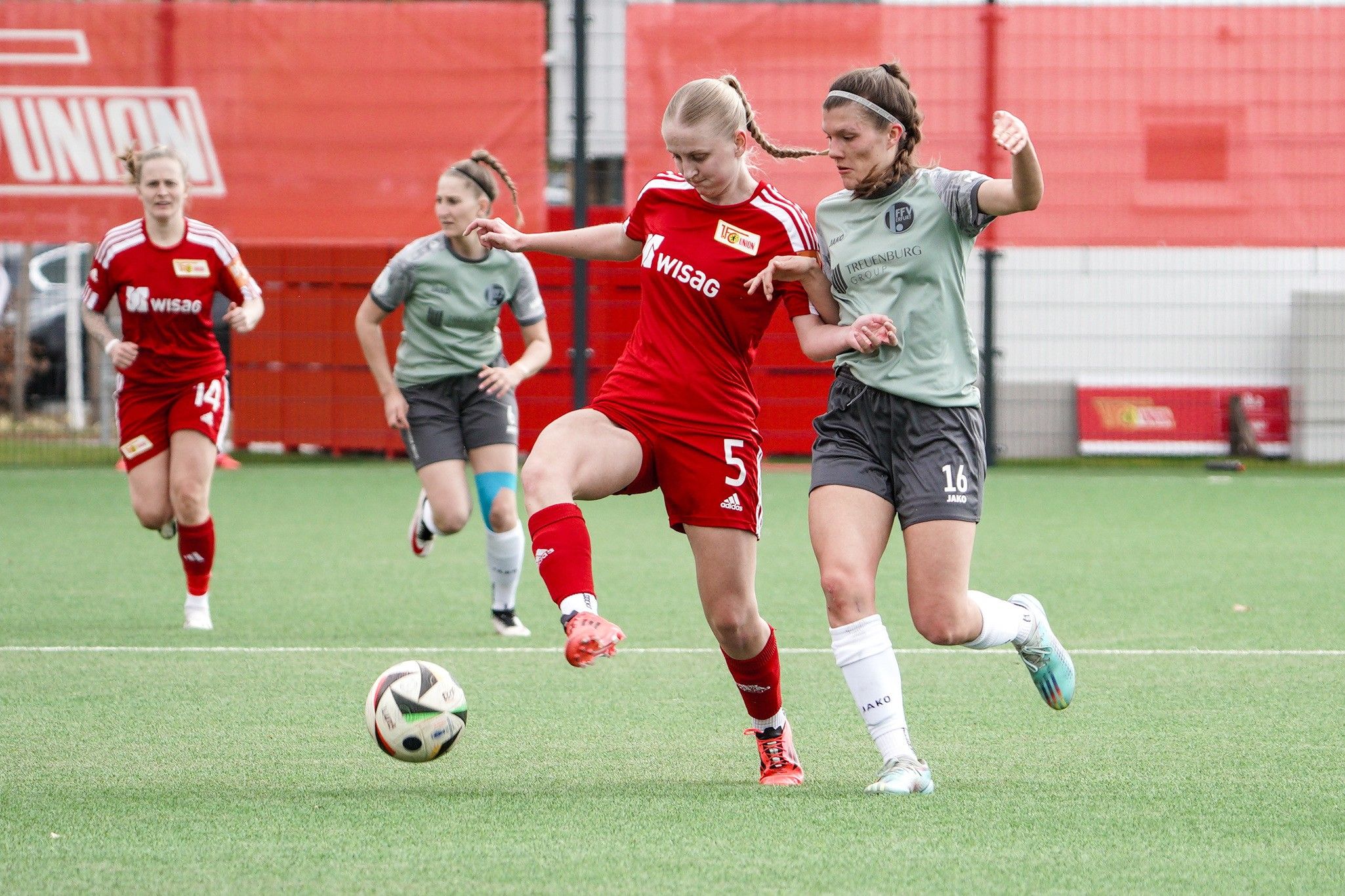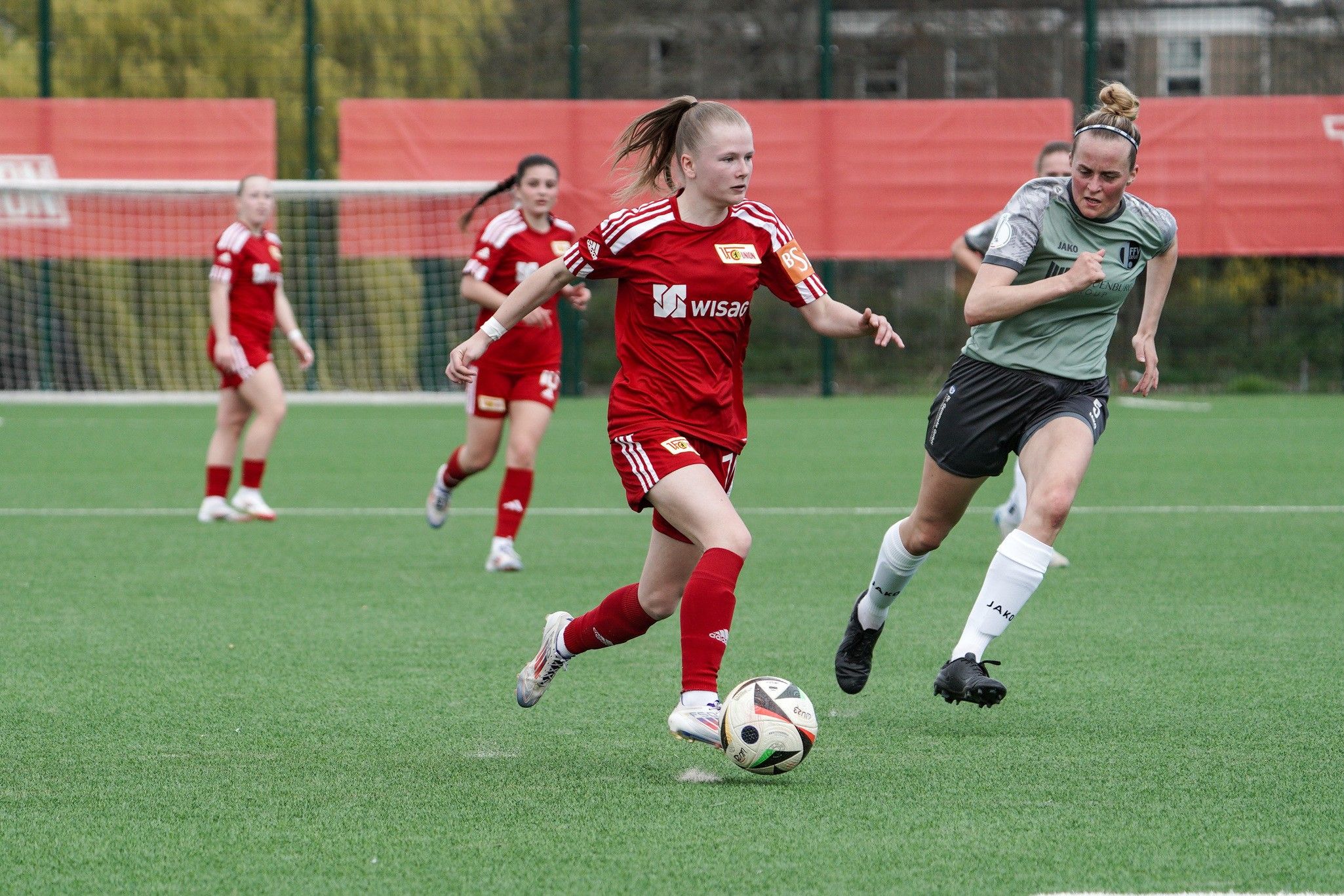 In a tough and physical game, clear goal-scoring opportunities were initially scarce. Union recorded their first attempt through Louisa Kähler in the 11th minute, but her long-range shot from outside the box flew well wide. At the other end, Sherly Schulz was on hand for a shot from Jutta Hein from a tight angle, as well as for a shot from Anna Mittelsdorf in the 25th minute, which she saved at the near post.