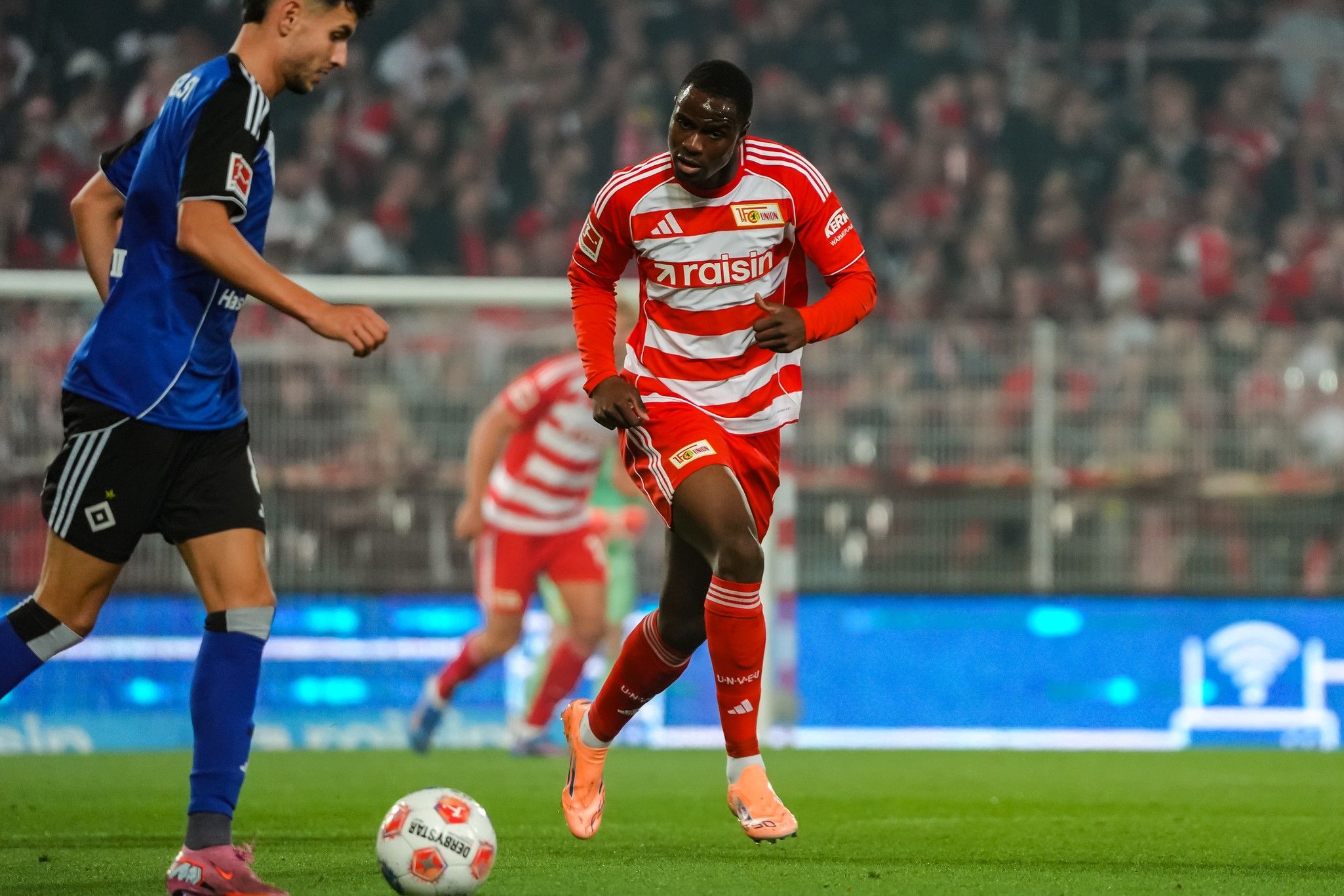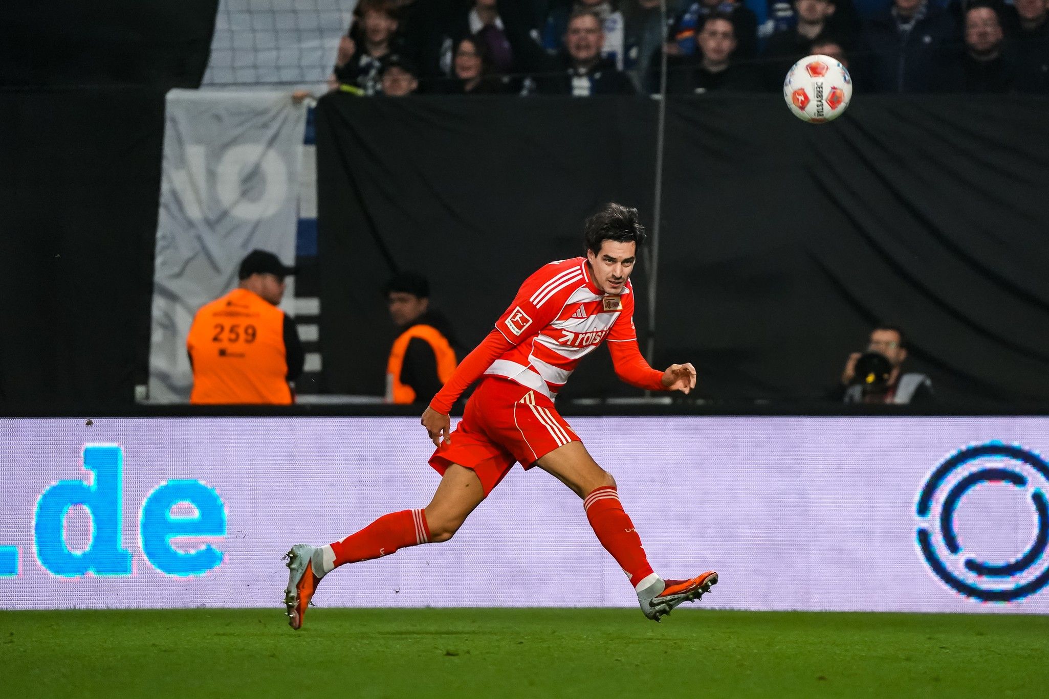 Steffen Baumgart’s understudy, the Union legend, Sebastian Bönig, made no changes at the break, and Ansah started off on the charge, Viera bouncing off him once on the byline, then a second time, having got up, and tried again to get the ball. Rani Khedira had the first shot after Köhn found Ilić, who chested the ball down into space for the vice-captain to squeeze out a volley, low and directed towards the left-hand upright, held at the second attempt by Fernandes Heuer.