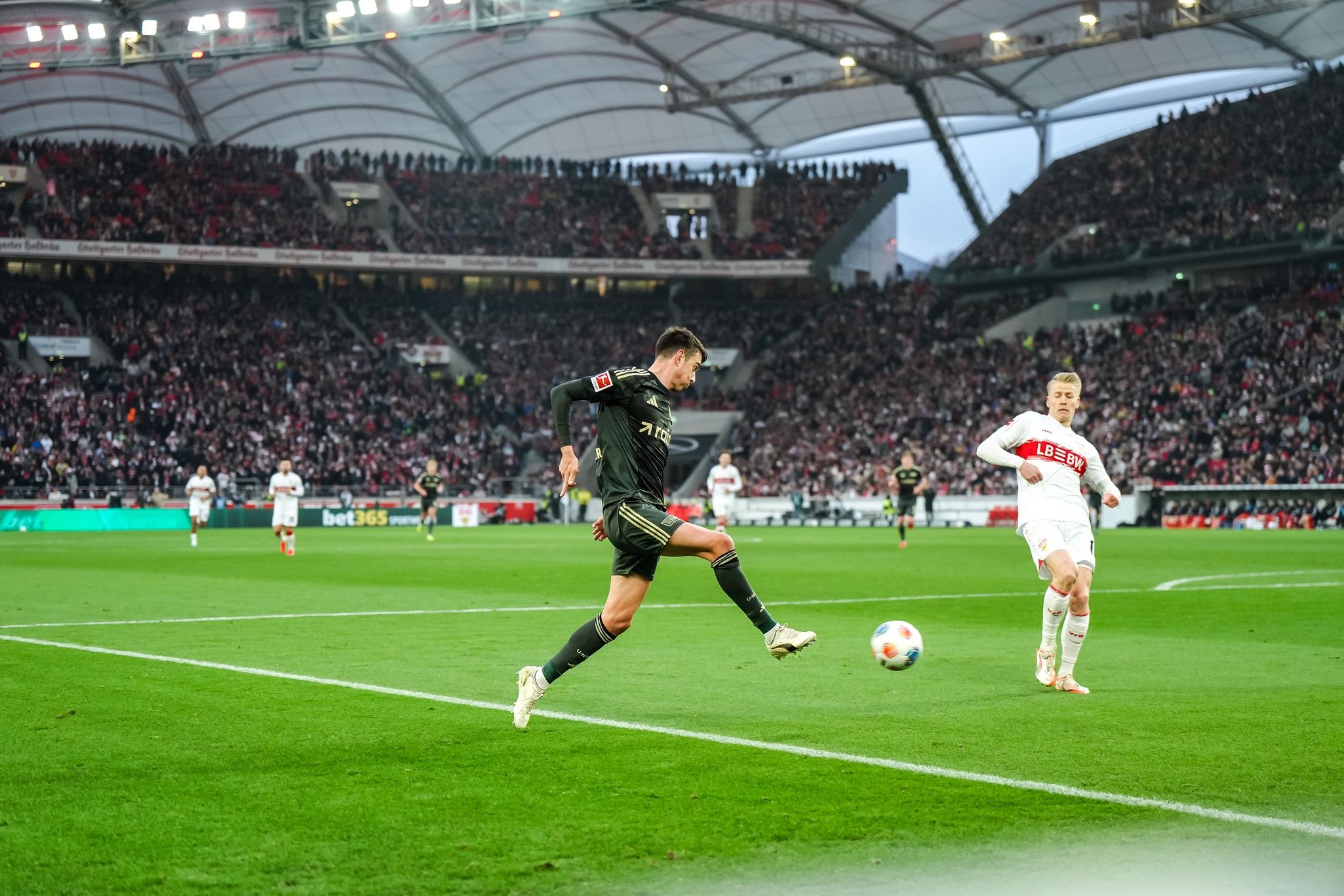 Livan Burcu was booked after under 20 seconds, having caught Maxi Mittelstädt just on the edge of the Stuttgart box, aiming for the ball with his studs, hitting the shin and ankle. Josip Juranović got his first touch in early too, though this was on the ball, heading it out for a corner as Mittelstädt wafted a ball in towards Frederik Rönnow’s back post; though it seemed to be drifting out, it was better to be safe than sorry.