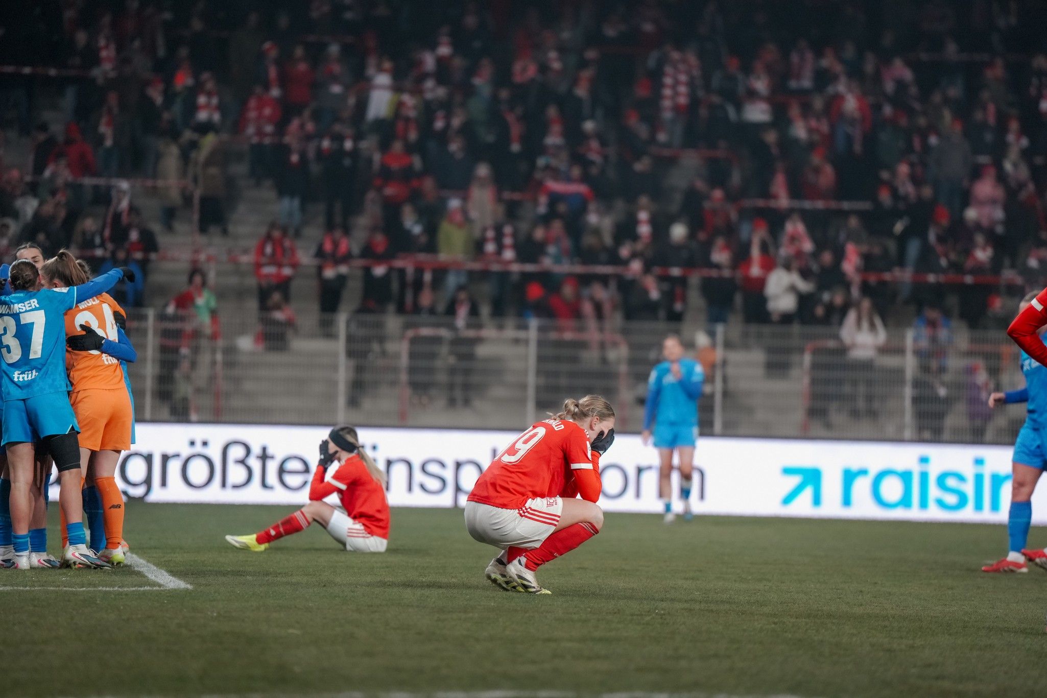 It was freezing in the Stadion An der Alten Försterei on Friday evening as 1. FC Union Berlin’s women’s team returned to the Bundesliga. The hastily laid, new pitch looked tinged with silver frost, the incredible crowd wrapped up to the nines. But compared to the malevolent wind, the result felt far more bitter. At the final whistle the players slumped to the floor, stunned. They had led since the 39th minute and been a player up since the 68th. As the shockwaves still echoed out out following Kristin Kögel’s 92nd minute winner, neither they nor the astonishing, 6,000-plus crowd could believe their eyes.