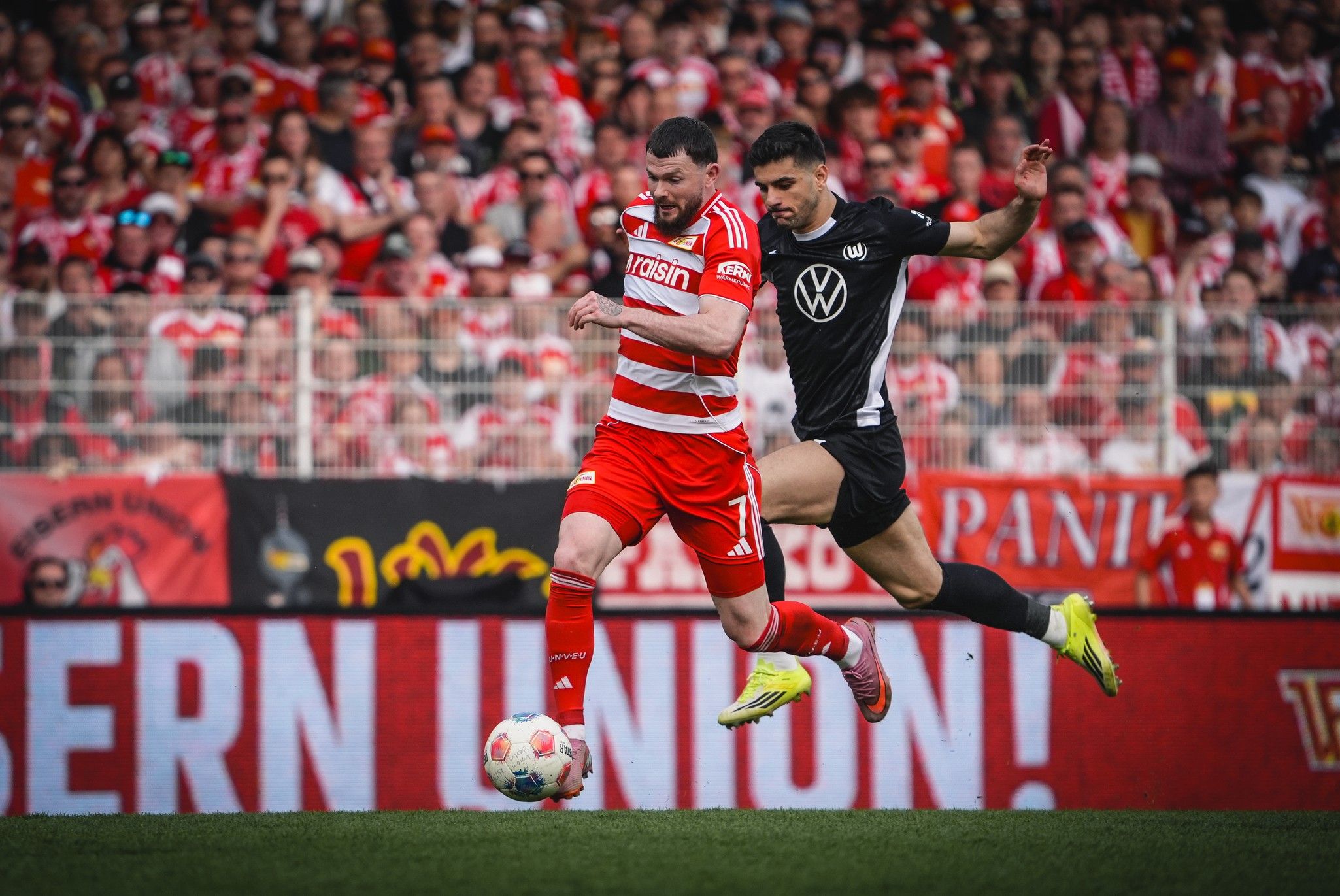 1. FC Union Berlin's men's team lost 2-1 to a battling VfL Wolfsburg on Saturday afternoon at the Stadion An der Alten Försterei. Having gone two down to fine strikes from distance by Patrick Wimmer and Dzenan Pejcinovic, Oliver Burke brought Union back into things in the 85th minute. But despite a furious final phase, the equaliser remained just out of reach.