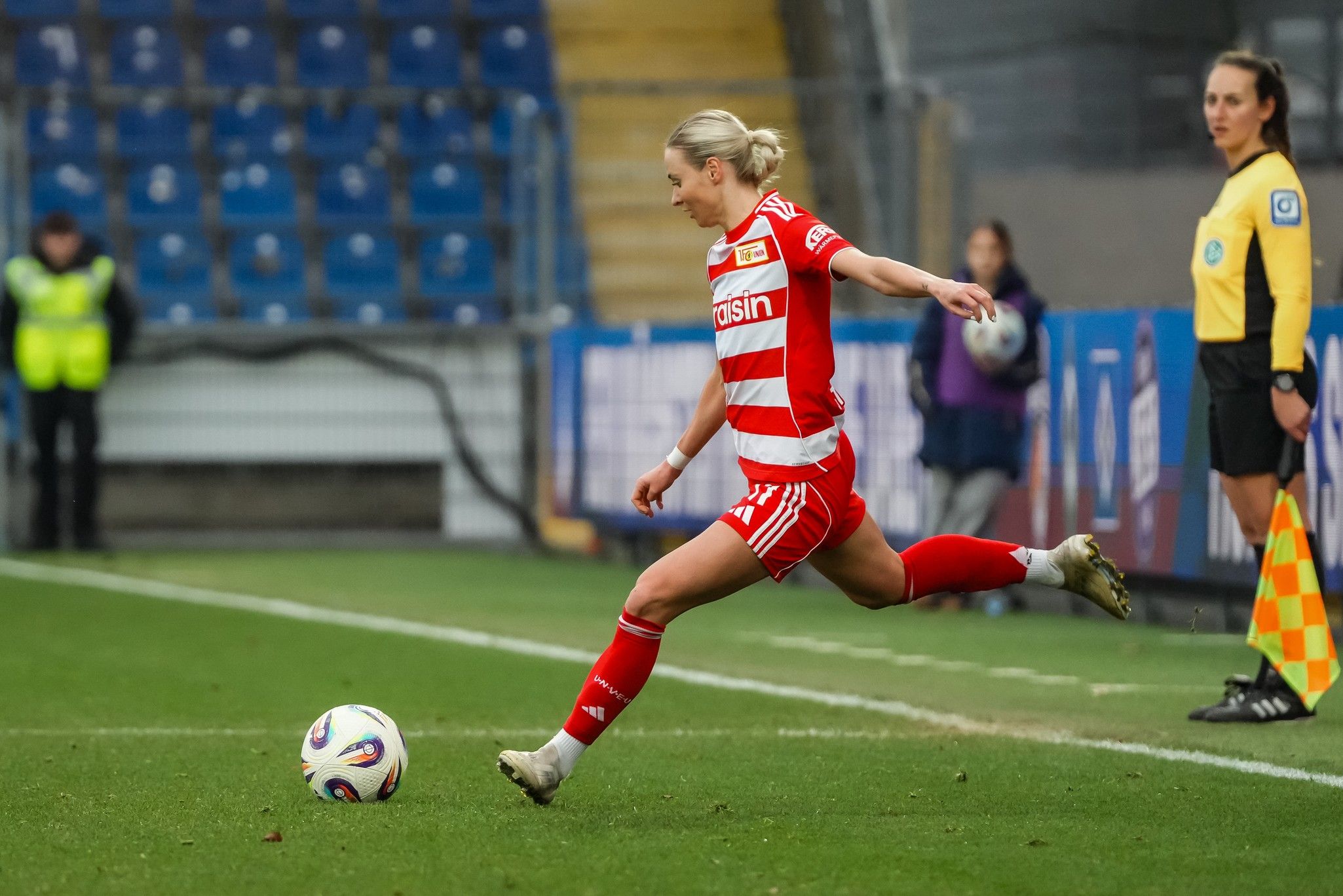 But if they hadn’t won since the 5-0 over Leipzig at home back in October this was also a crucial game for their hosts, who started off trying to put Union under pressure immediately, hemming Judith Steinert back towards her own corner flag. Yet Union were fearless, determined to play out from the back, as seen when Nadine Böhi opted to pass short having claimed a deep cross from the right easily, plucking it out of the sky.