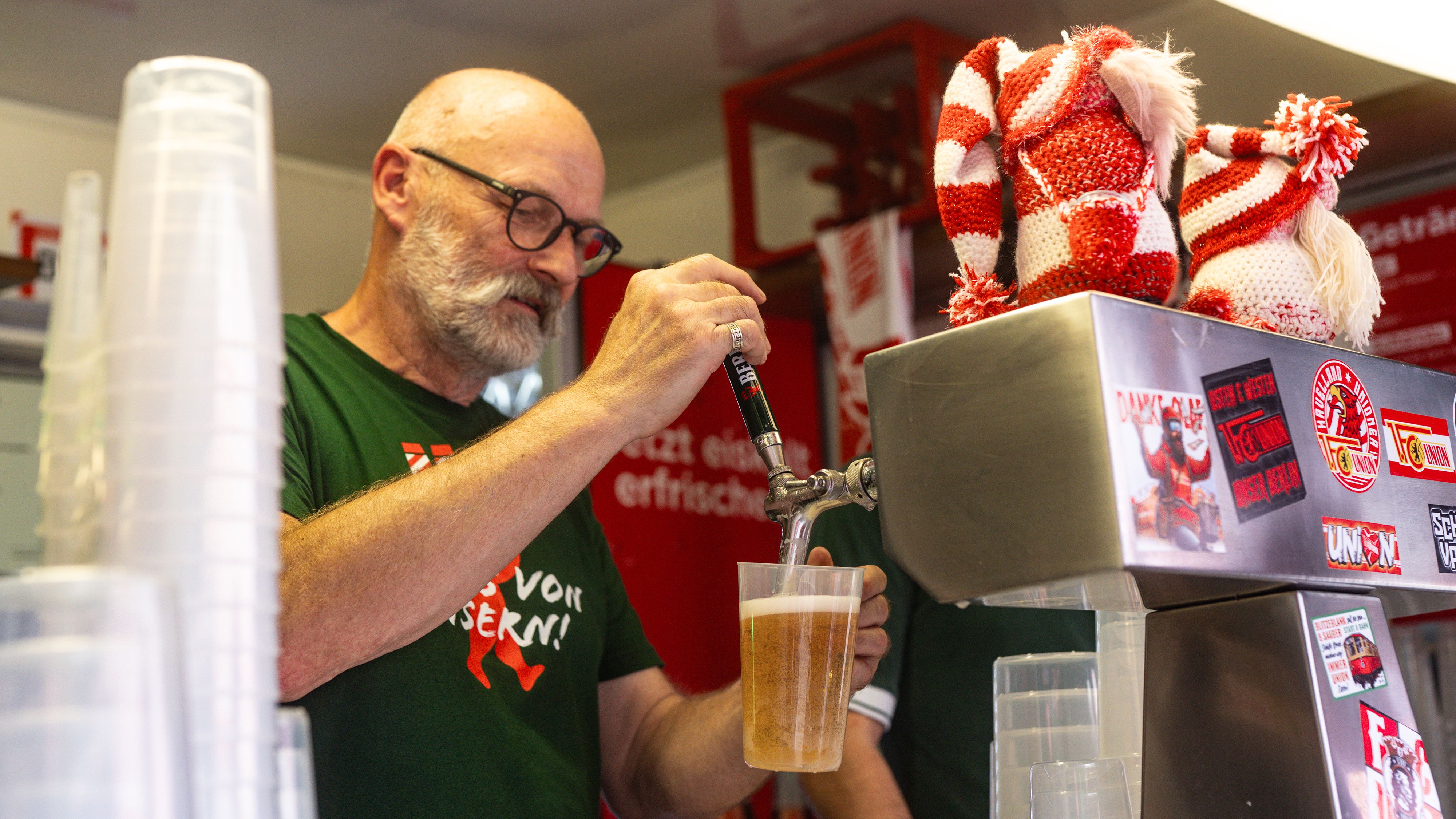 In our Stadion An der Alten Försterei, we offer a diverse gastronomic selection. At our charcoal grills, there are bratwurst, steak, and Krakauer in a bun. The soup kitchen serves pea soup, kettle goulash, and Bockwurst. Catering stations and beer wagons offer drinks such as Berliner Pilsner, wine, soft drinks, and mulled wine (in winter). Additionally, concessionaires provide vegetarian and vegan flatbreads, fish rolls, pretzels, and ice cream.