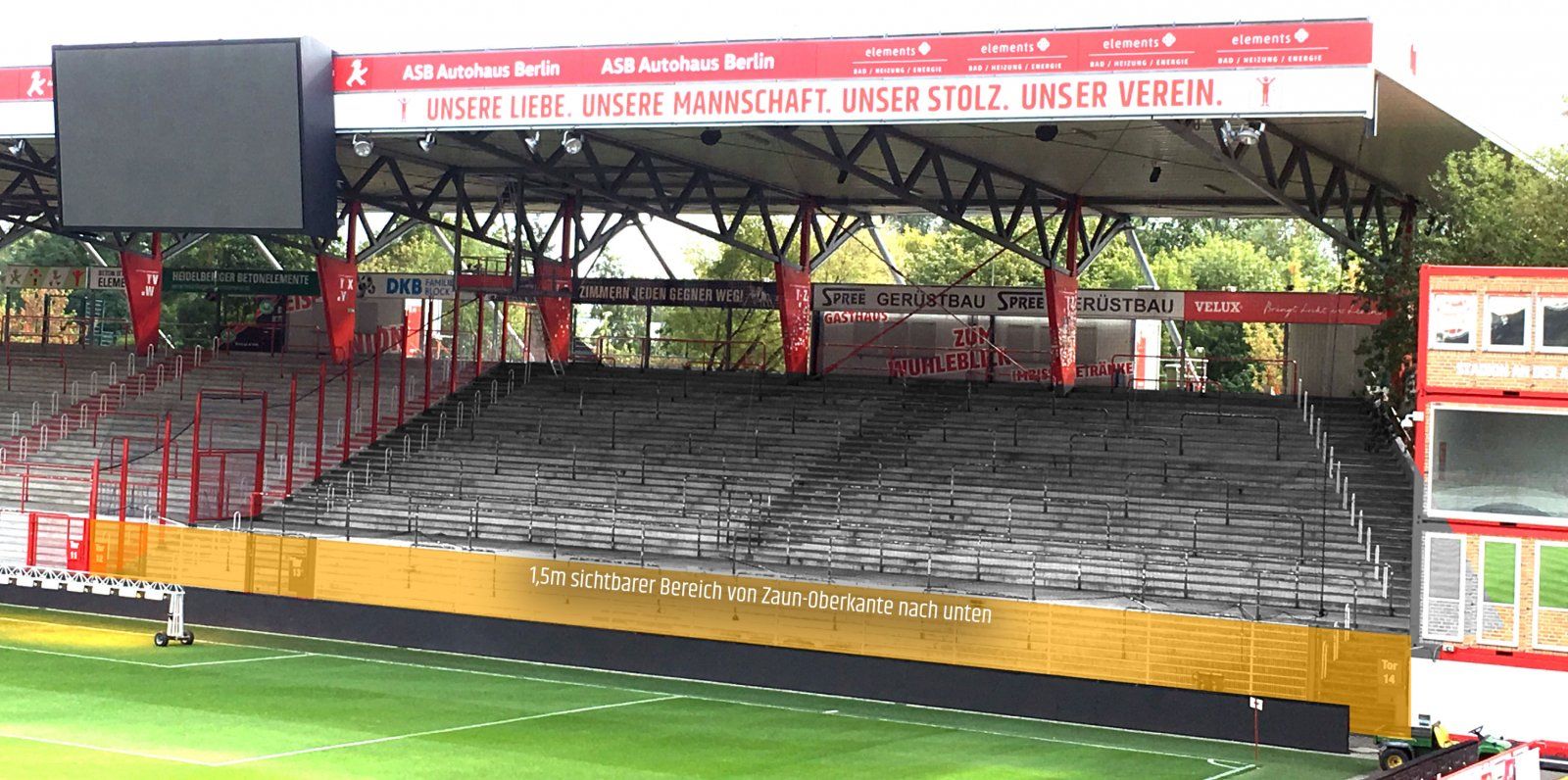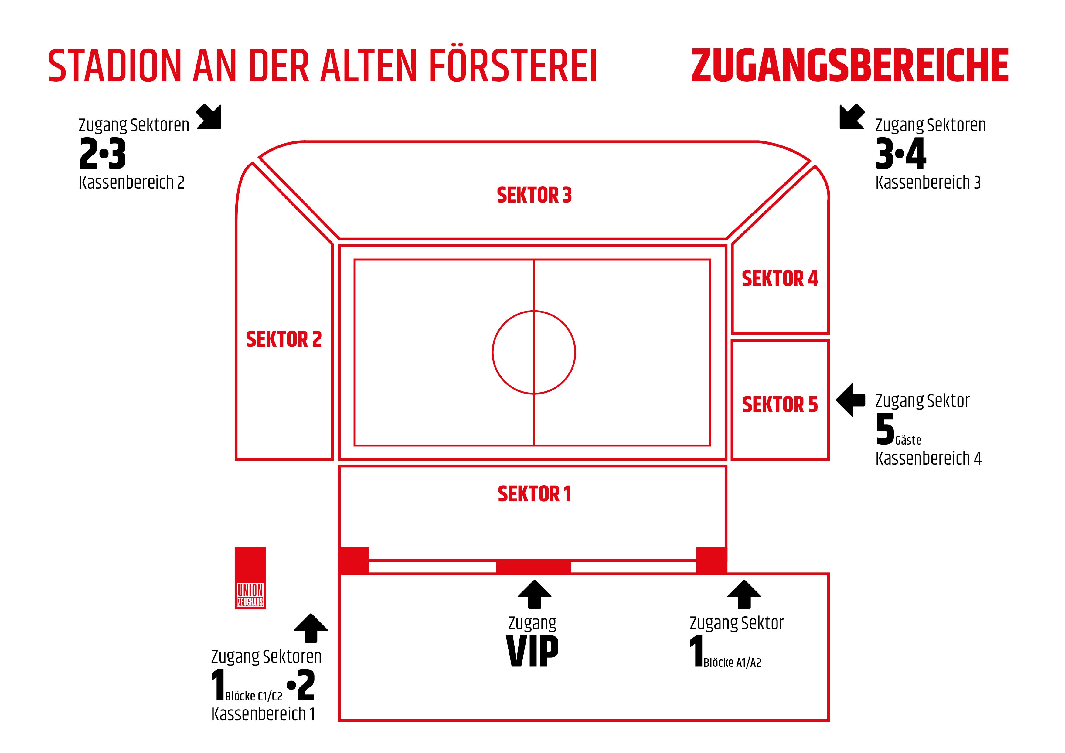 Nuestro grada visitante se encuentra en el sector 5, accesible a través de la zona de taquilla 4. El acceso a la grada visitante está directamente en la Wuhle. Se llega a este a través de la calle An der Wuhlheide tras aproximadamente 200 m a pie.