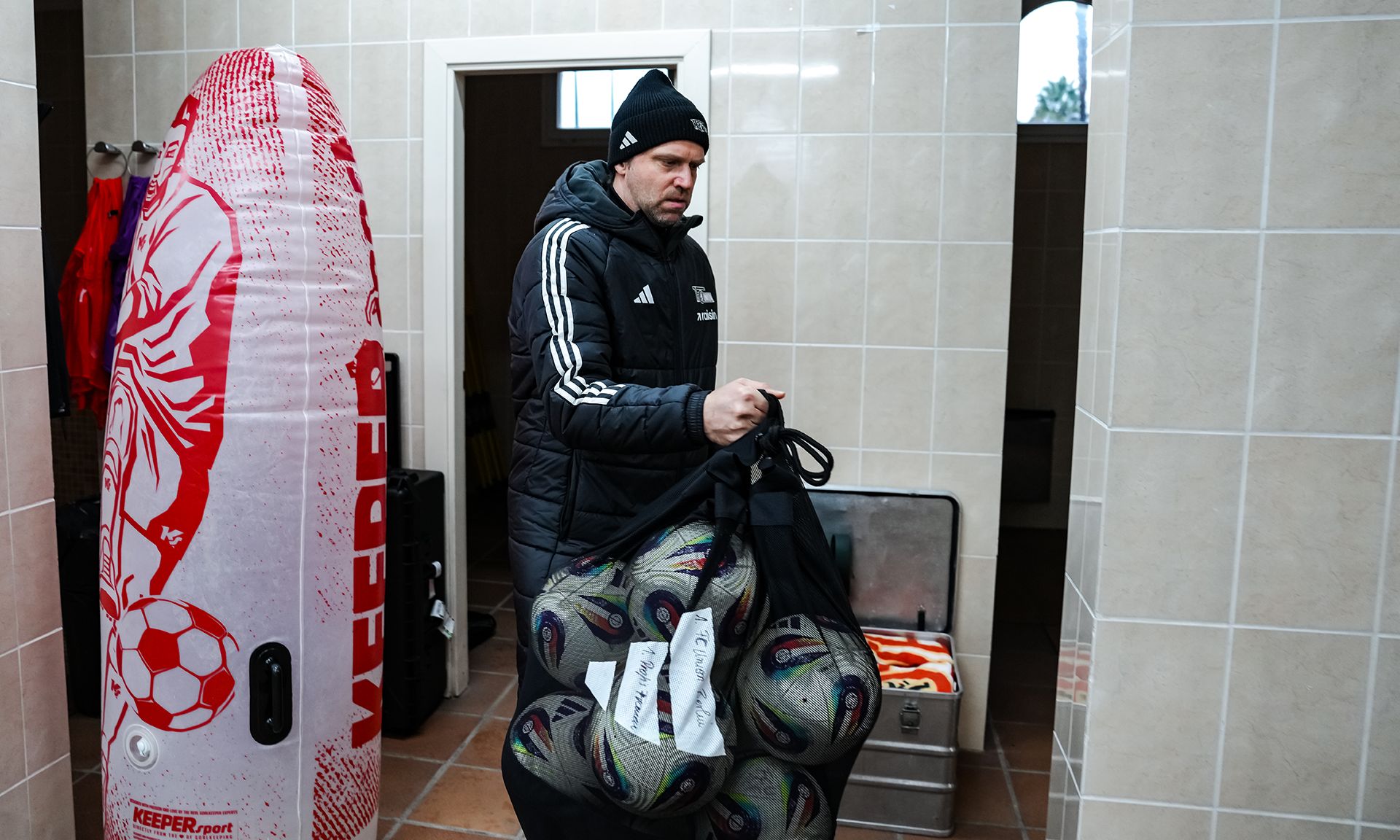 Para el encargado de material, Jan Walle, las primeras conversaciones con el equipo de entrenadores y la dirección comenzaron ya en octubre y noviembre, para asegurarse de que el material necesario llegara completo y a tiempo al destino. Desde ropa de entrenamiento y de juego en múltiples versiones, hasta balones, equipo de análisis, ordenadores, impresoras y pizarras tácticas, pasando por el material del departamento médico: nada se deja al azar, porque nunca se sabe qué circunstancias se presentarán en el lugar. Esta vez, el desafío logístico fue especialmente grande, ya que todo tuvo que ser empaquetado en cajas. En lugar de viajar como de costumbre en furgoneta, el equipo se transportó este año por avión. A pesar de pequeños retrasos en algunas piezas de equipaje, al final todo funcionó correctamente, permitiendo que el equipo se concentre plenamente en el entrenamiento.